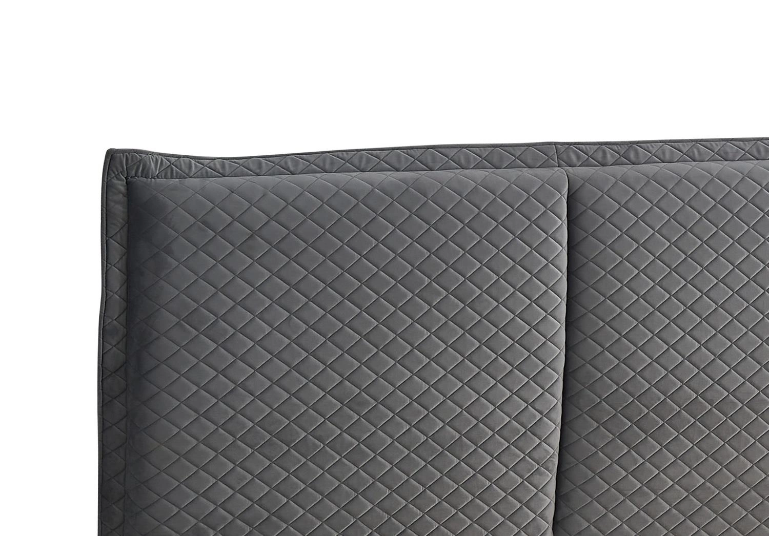 Szare łóżko tapicerowane Beck 160x200 zachwyca ponadczasowym designem, który doskonale wpisuje się w aranżacje nowoczesne i minimalistyczne. Gładka tkanina welurowa nie tylko przyciąga wzrok subtelnym połyskiem, ale także jest wyjątkowo przyjemna w dotyku, dzięki czemu codzienny odpoczynek staje się prawdziwą przyjemnością. Pikowane wezgłowie łóżka dodaje wnętrzu elegancji i stanowi wygodne oparcie podczas wieczornego czytania lub oglądania ulubionych filmów.