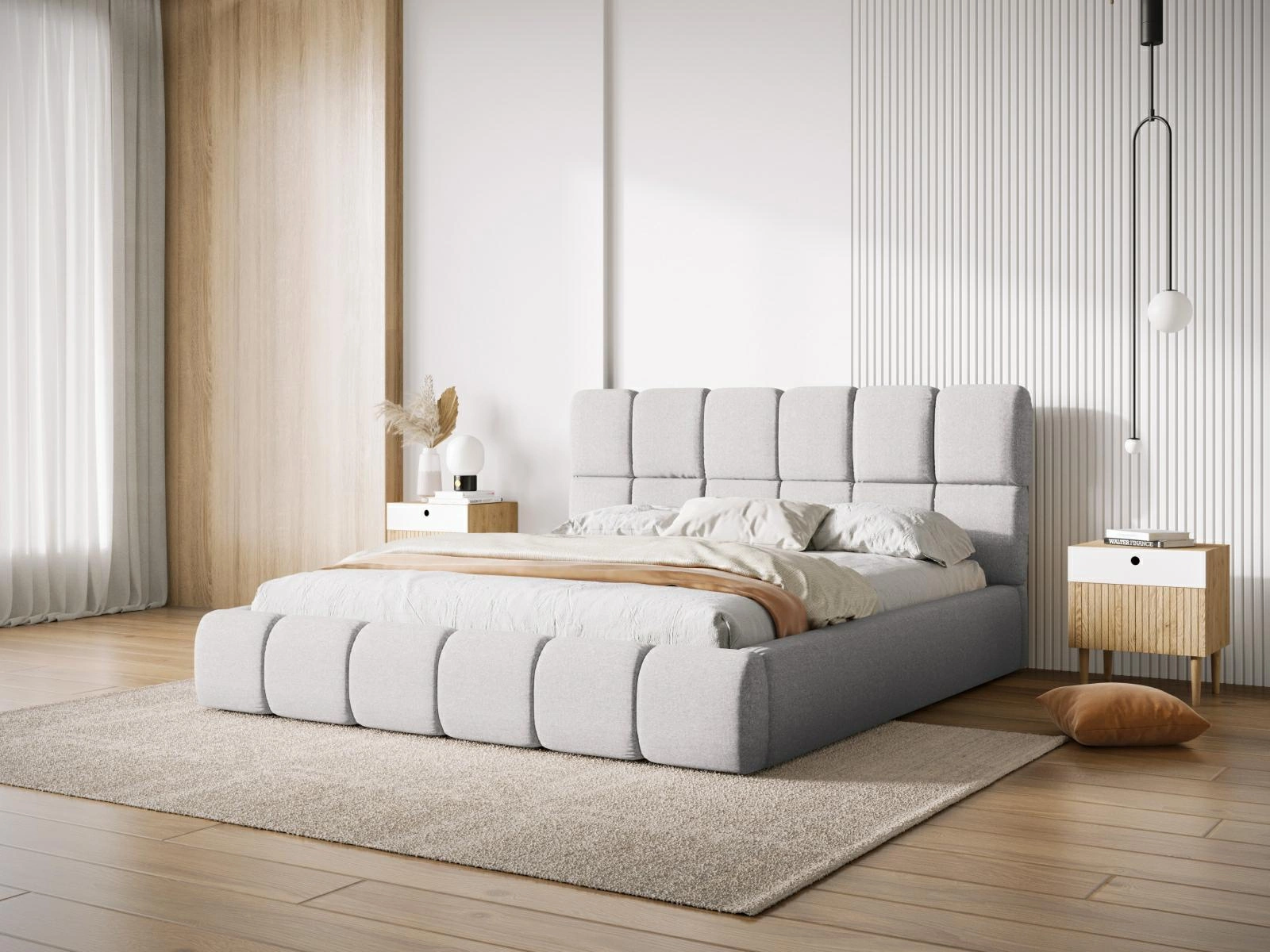 Łóżko tapicerowane Bellis szare 140x200 to nowoczesny wybór do sypialni, łączący elegancki design z funkcjonalnością na co dzień. Obite przyjemną w dotyku jasnoszarą tkaniną, wyposażone w pojemny schowek na pościel oraz stabilny stelaż, gwarantuje komfort snu i łatwość utrzymania porządku. Przemyślana konstrukcja o powierzchni spania 140x200 cm sprawia, że Bellis to łóżko dwuosobowe stworzone z myślą o wygodzie i estetyce nowoczesnych wnętrz.