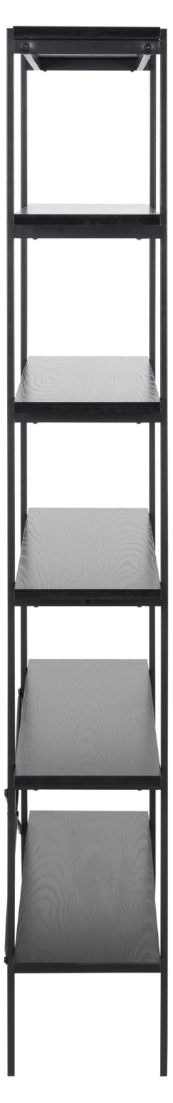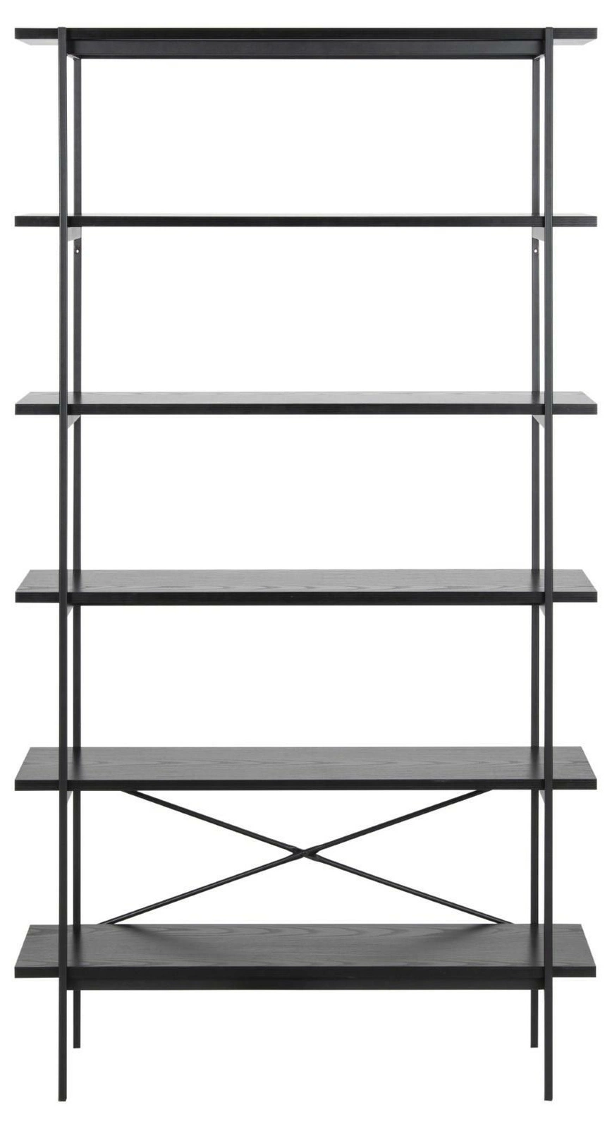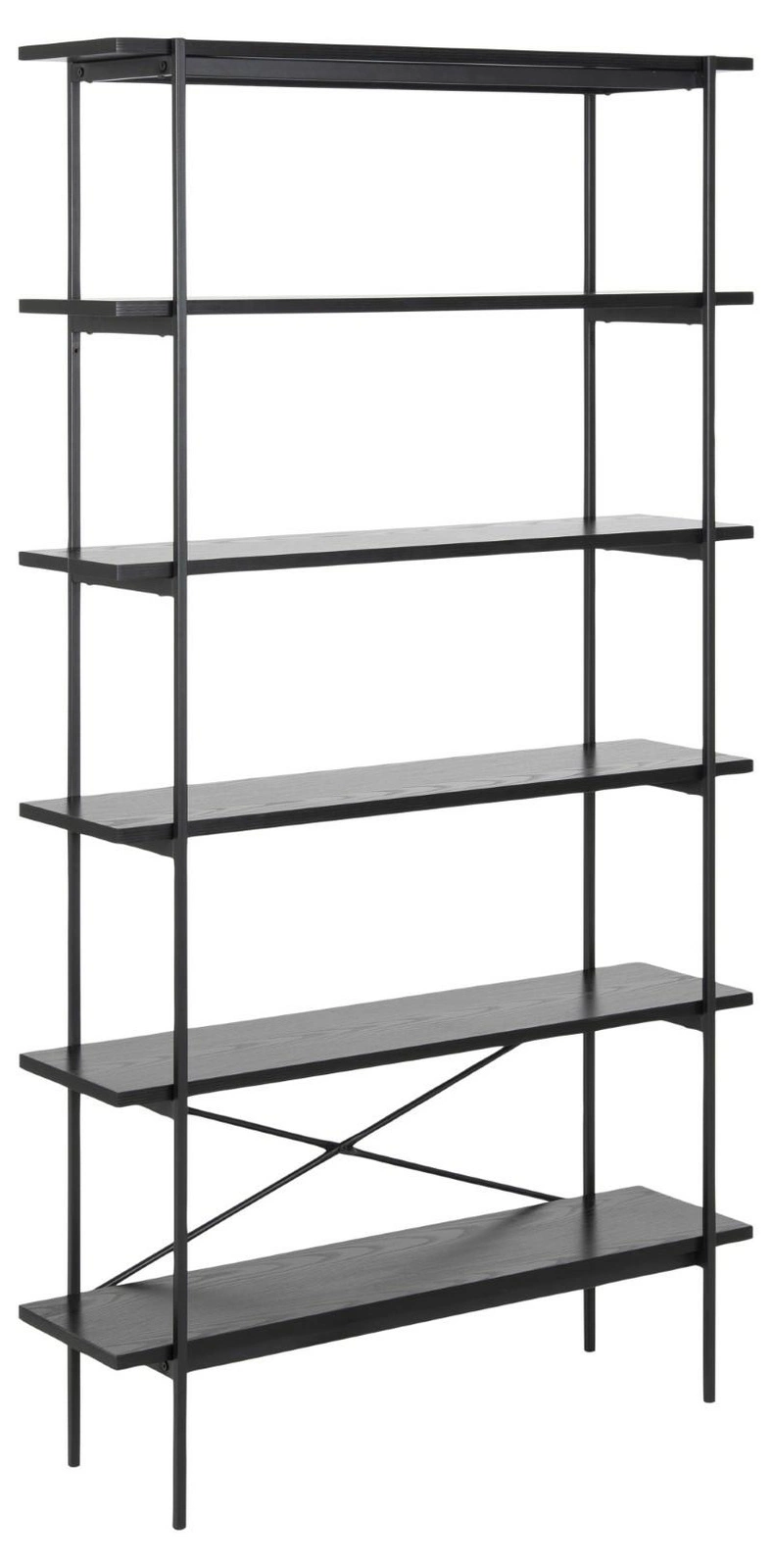 Czarny regał Angus to kolejny element industrialnej kolekcji o tej samej nazwie. Kolekcja Angus duńskiej firm Actona to meble industrialne utrzymane w eleganckiej czerni. Cały czarny regał z półkami będzie odpowiednim meblem zarówno do eleganckiego biura jak i do eklektycznego salonu. Czarne półki z płyty MDF wykończone zostały okleiną imitującą drewno jesionu. Stelaż regału został zrobiony metalu malowanego proszkowo na czarno.