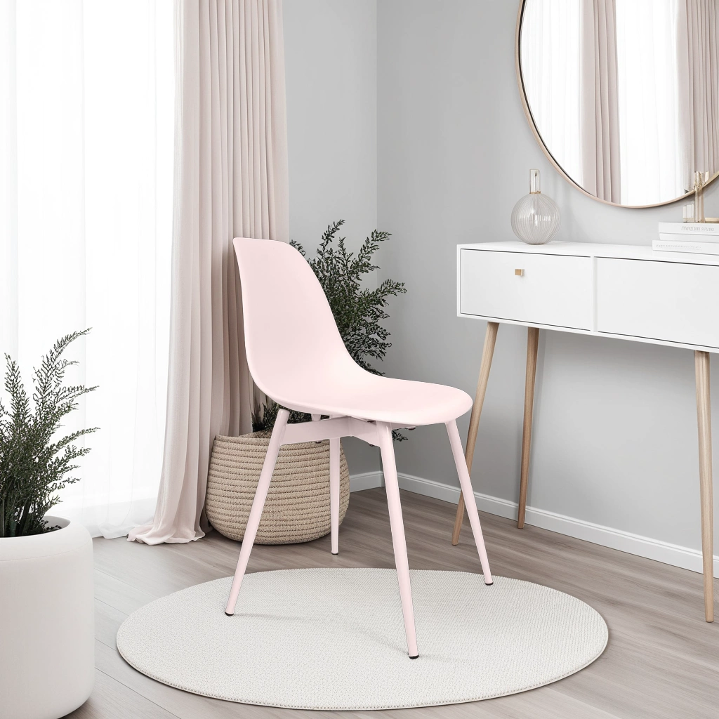 Krzesło dziecięce w kolorze różowym jest idealne dla małej dziewczynki, która uwielbia ten kolor. Wykonane z profilowanego plastikowego siedziska i metalowych nóżek. Podstawą krzesła są cztery nogi w tym samym kolorze. Krzesło wymaga prostego montażu, który polega jedynie na przykręceniu nóg do siedziska. Może utrzymać ciężar do 60 kg.