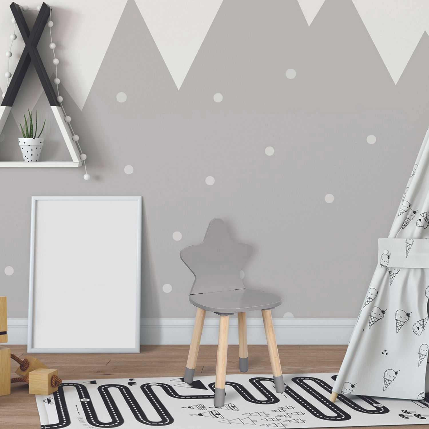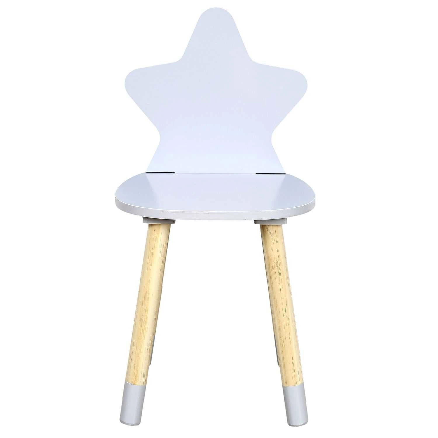Puppe to krzesło z oparciem w kształcie gwiazdki, które idealnie pasuje do pokoju małego dziecka. Krzesło Puppe zostało wykonane z drewna sosnowego polakierowanego i pomalowanego na kolor szary. Dziecięce krzesło to idealne siedzisko w unikatowej formie. Nóżki krzesła w naturalnym kolorze zostały wykończone kolorem szarym. Krzesło wyprodukowane zostało ze starannością o najmniejsze szczegóły, z najlepszych jakościowo materiałów i podzespołów, dzięki czemu jest nie tylko wytrzymałe, ale również bezpieczne.