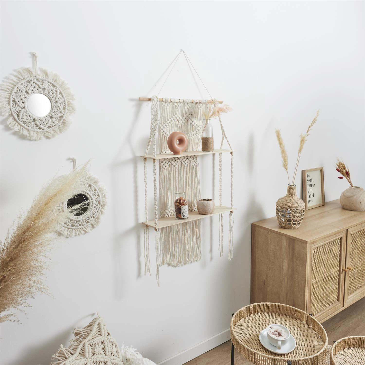 Dzięki swojej plecionej konstrukcji w stylu macramy, półka Boho dodaje wnętrzu niepowtarzalnego, etnicznego charakteru. Jest to nie tylko praktyczne rozwiązanie do przechowywania książek, ozdób czy roślin, ale także wyjątkowy element dekoracyjny, który wzbogaci każde pomieszczenie.