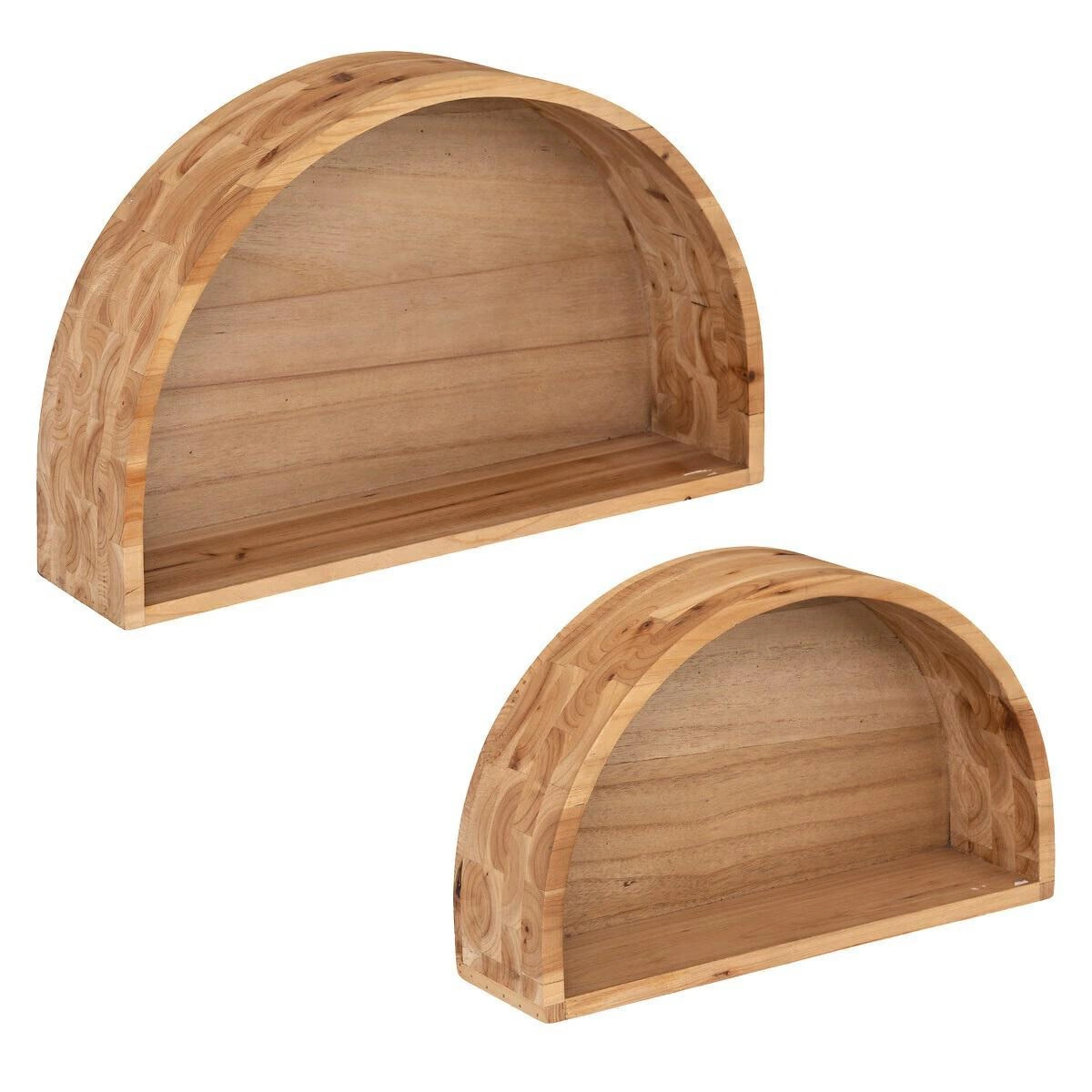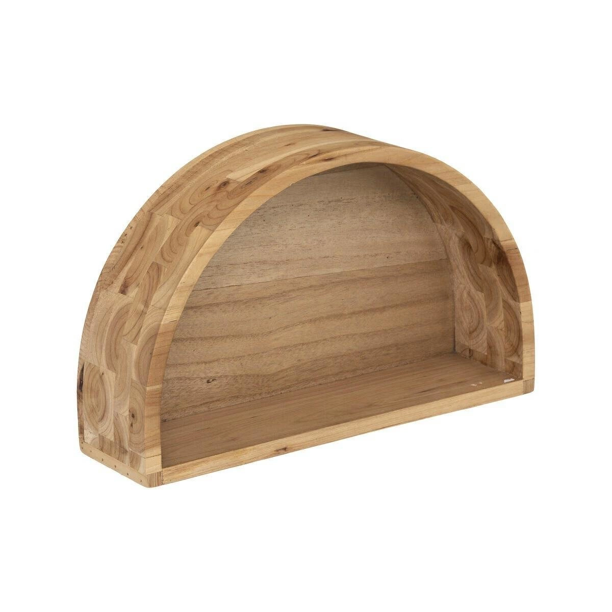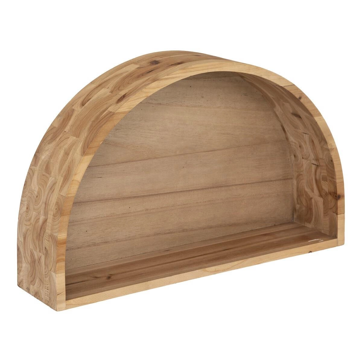 Półki Maude z półksiężycowym wzorem są niezwykłym dodatkiem do każdego wnętrza, idealnym do eksponowania dzieł sztuki i innych figurek. Ich jodłowa konstrukcja o półokrągłym kształcie nadaje domowi radosnego wiejskiego lub górskiego charakteru, tworząc przytulną atmosferę. Oryginalny i praktyczny design półki Maude przypomina beczkę przeciętą na pół, co dodaje jej unikalnego uroku. Drewniany materiał i zaokrąglony kształt sprawiają, że półka jest nie tylko estetyczna, ale również funkcjonalna.