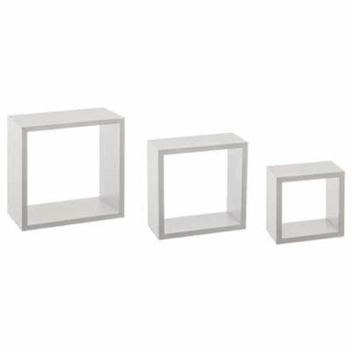 Zestaw zawiera trzy półki o różnych rozmiarach: mały model o wymiarach 15 cm szerokości, 9 cm głębokości i 15 cm wysokości; średni model o wymiarach 20 cm szerokości, 9 cm głębokości i 20 cm wysokości; oraz duży model o wymiarach 25 cm szerokości, 9 cm głębokości i 25 cm wysokości. Każda półka jest lekka, a cały zestaw waży 1,59 kg.