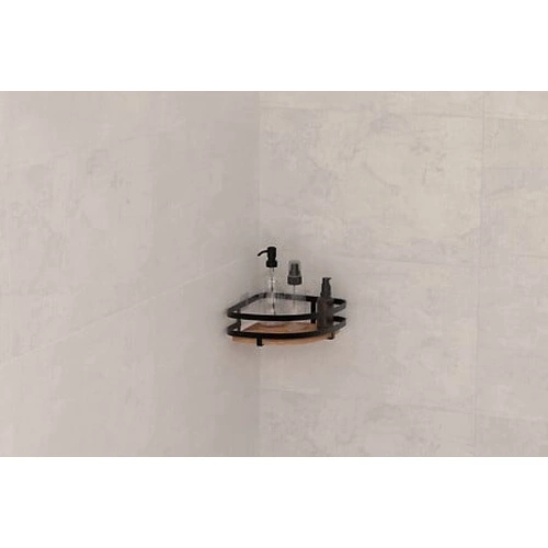 Design półki łazienkowej Blackacia opiera się na kontrastowym zestawieniu głębokiej czerni z ciepłem naturalnego drewna akacjowego. Ten industrialny, a zarazem minimalistyczny styl doskonale pasuje zarówno do wnętrz loftowych, jak i nowoczesnych łazienek. Dzięki trójkątnemu kształtowi, półka narożna pod prysznic nie tylko świetnie się prezentuje, ale też pozwala na wygodne przechowywanie kosmetyków, żeli czy akcesoriów kąpielowych bez zajmowania cennego miejsca.