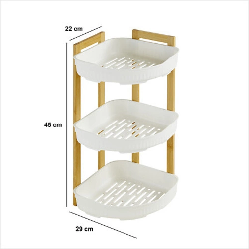 Półka łazienkowa narożna Naturéo 3-poziomowa biała marki 5five simply smart to praktyczne i stylowe rozwiązanie do każdej łazienki. Wykonana z połączenia trwałego tworzywa oraz naturalnego bambusa, zapewnia nie tylko stabilność, ale i wyjątkowy wygląd inspirowany stylem skandynawskim. Dzięki trzem poziomom i kompaktowym wymiarom (45 cm wysokości, 22 cm szerokości, 29 cm głębokości), ta narożna półka łazienkowa pozwala w pełni wykorzystać nawet niewielki kąt pomieszczenia.