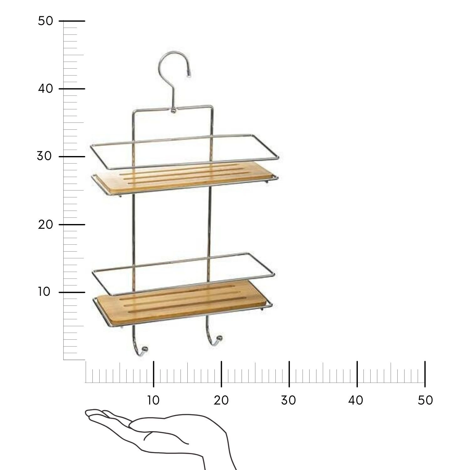 Półka łazienkowa pod prysznic Venterra 2-poziomowa marki 5five simply smart to wyjątkowe połączenie naturalnego drewna bambusowego i metalu, które wnosi do wnętrza łazienki styl boho i funkcjonalność. Model o wysokości 45,4 cm i szerokości 25,5 cm został zaprojektowany z myślą o wygodnym przechowywaniu kosmetyków oraz akcesoriów kąpielowych. Dwa poziomy półek oraz praktyczne haczyki pozwalają uporządkować przestrzeń pod prysznicem lub przy wannie, dbając o estetykę i codzienny komfort użytkowania.
