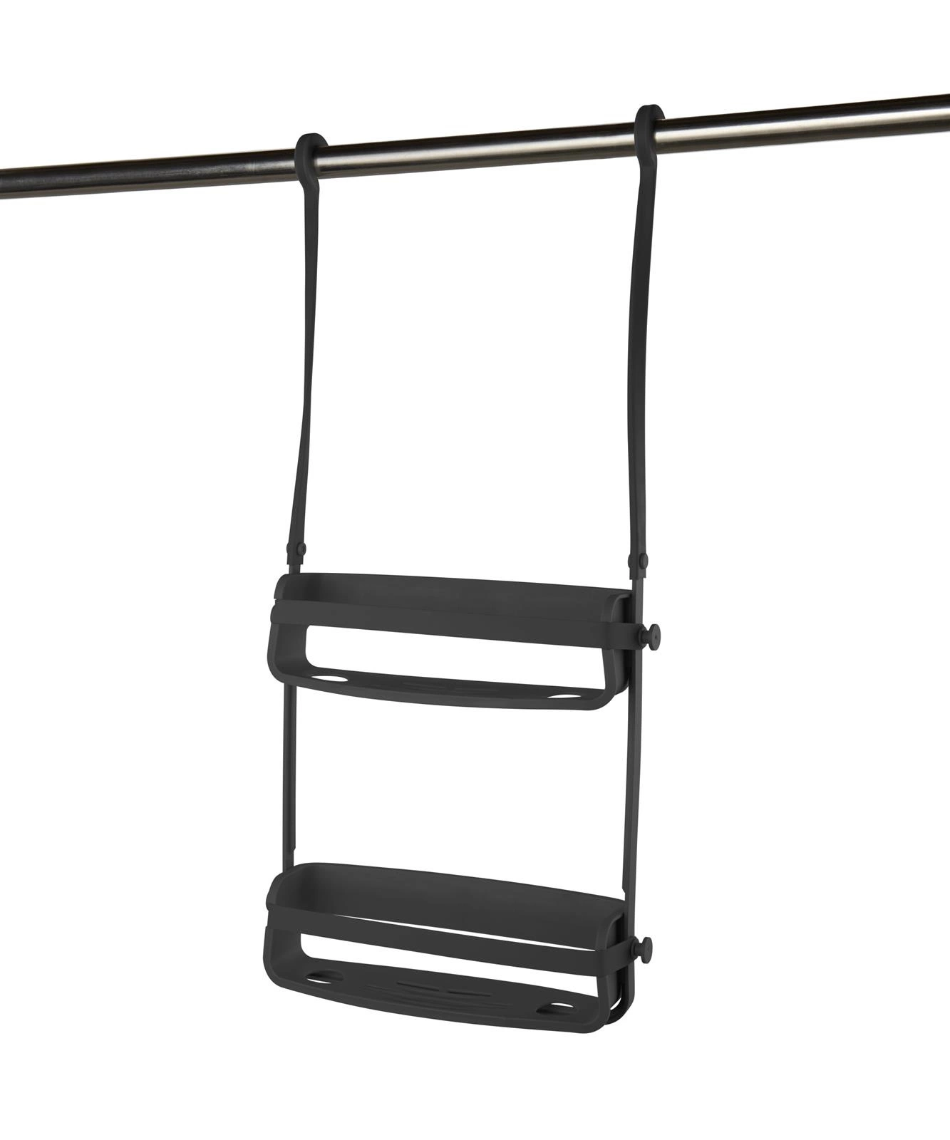Zapomnij o bałaganie i chaosie pod prysznicem. Półka łazienkowa Umbra FLEX pozwala na wygodne przechowywanie szamponów, żeli i akcesoriów, dzięki czemu wszystkie niezbędne kosmetyki masz zawsze w zasięgu ręki. Dwa pojemne poziomy oraz dodatkowe haczyki umożliwiają funkcjonalne uporządkowanie gąbek, myjek czy maszynek do golenia. To doskonałe rozwiązanie zarówno do mniejszych, jak i przestronnych łazienek, w których liczy się każdy centymetr.