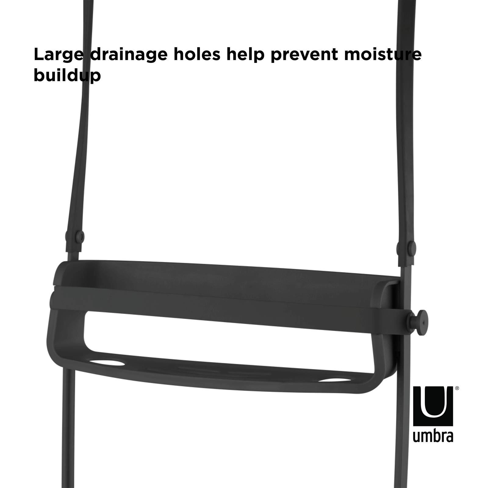 Nowoczesna półka łazienkowa czarna Umbra FLEX nie tylko świetnie wygląda, ale też jest niezwykle praktyczna. Jej powierzchnie zostały zaprojektowane z myślą o łatwym utrzymaniu w czystości – woda swobodnie spływa przez otwory, zapobiegając gromadzeniu się wilgoci i osadów. Trwałe tworzywo odporne na działanie wody i środków czystości zapewnia długotrwałe użytkowanie bez utraty estetyki.