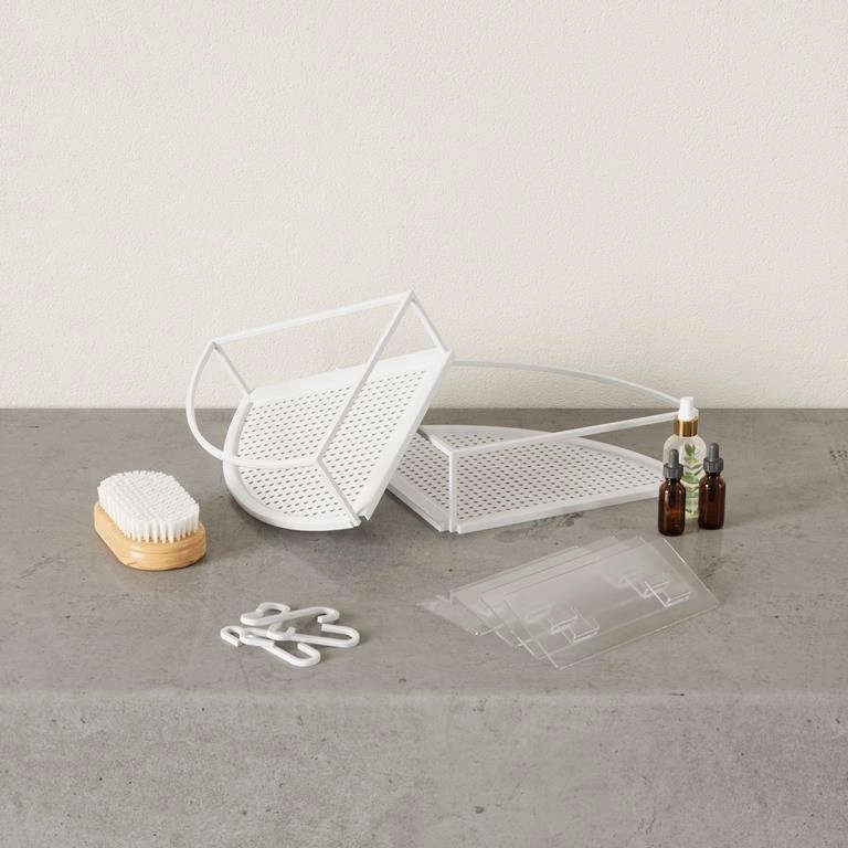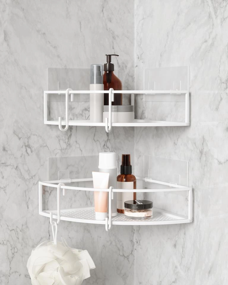 Zestaw półek łazienkowych narożnych Cubiko Umbra to propozycja dla osób, które poszukują praktycznego i nowoczesnego rozwiązania do przechowywania pod prysznicem lub w pobliżu wanny. Dwa białe, metalowe moduły o wymiarach 23×23×8 cm zapewniają wygodny dostęp do najważniejszych kosmetyków i akcesoriów, a ich montaż nie wymaga wiercenia – wystarczy zastosować dołączone, samoprzylepne elementy. Minimalistyczny design harmonijnie wpisuje się zarówno w łazienki w stylu nowoczesnym, jak i industrialnym.