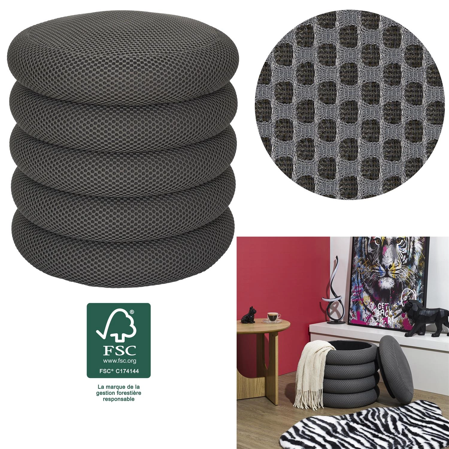 Pufa Atom szara została zaprojektowana z myślą o miłośnikach minimalistycznych, uporządkowanych przestrzeni. Jej okrągła forma oraz jednolita kolorystyka wprowadzą do wnętrza poczucie ładu i spokoju, charakterystyczne dla stylu japandi. Delikatna, trójwymiarowa struktura tkaniny sprawia, że pufa staje się subtelnym, a zarazem wyrazistym akcentem nowoczesnych aranżacji. Szary odcień doskonale komponuje się z drewnem, bielą czy naturalnymi tekstyliami, podkreślając uniwersalność tego dodatku.