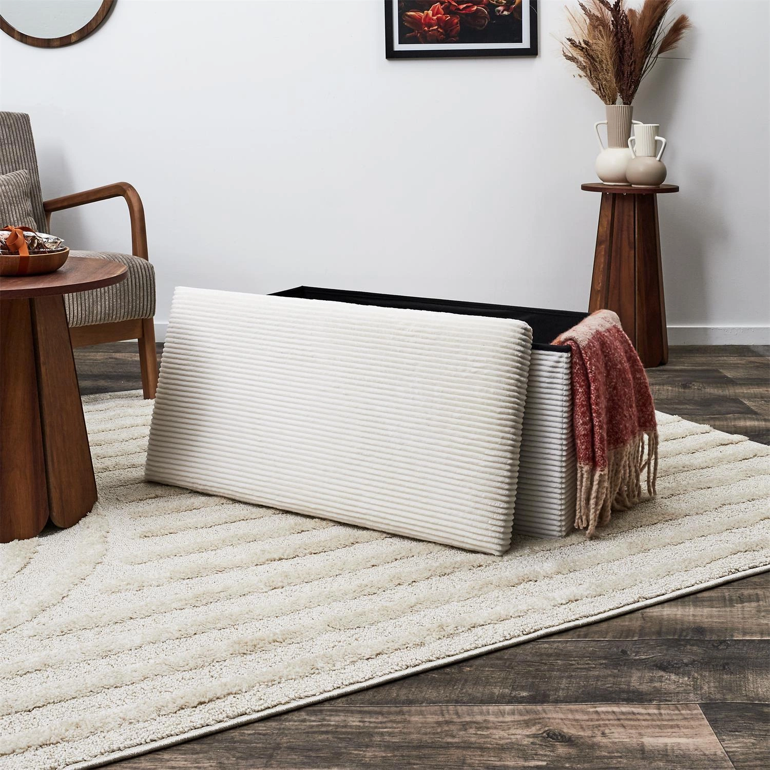 Pufa Medford składana z pojemnikiem - biała, elegancja w skandynawskim stylu