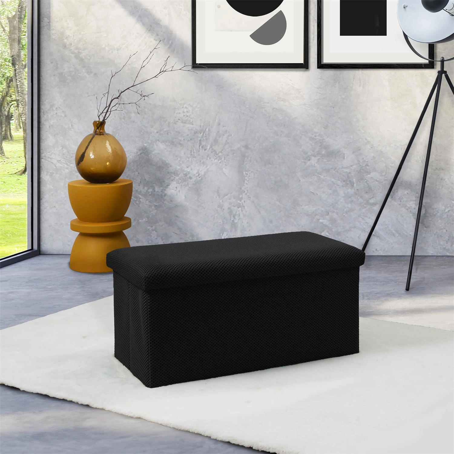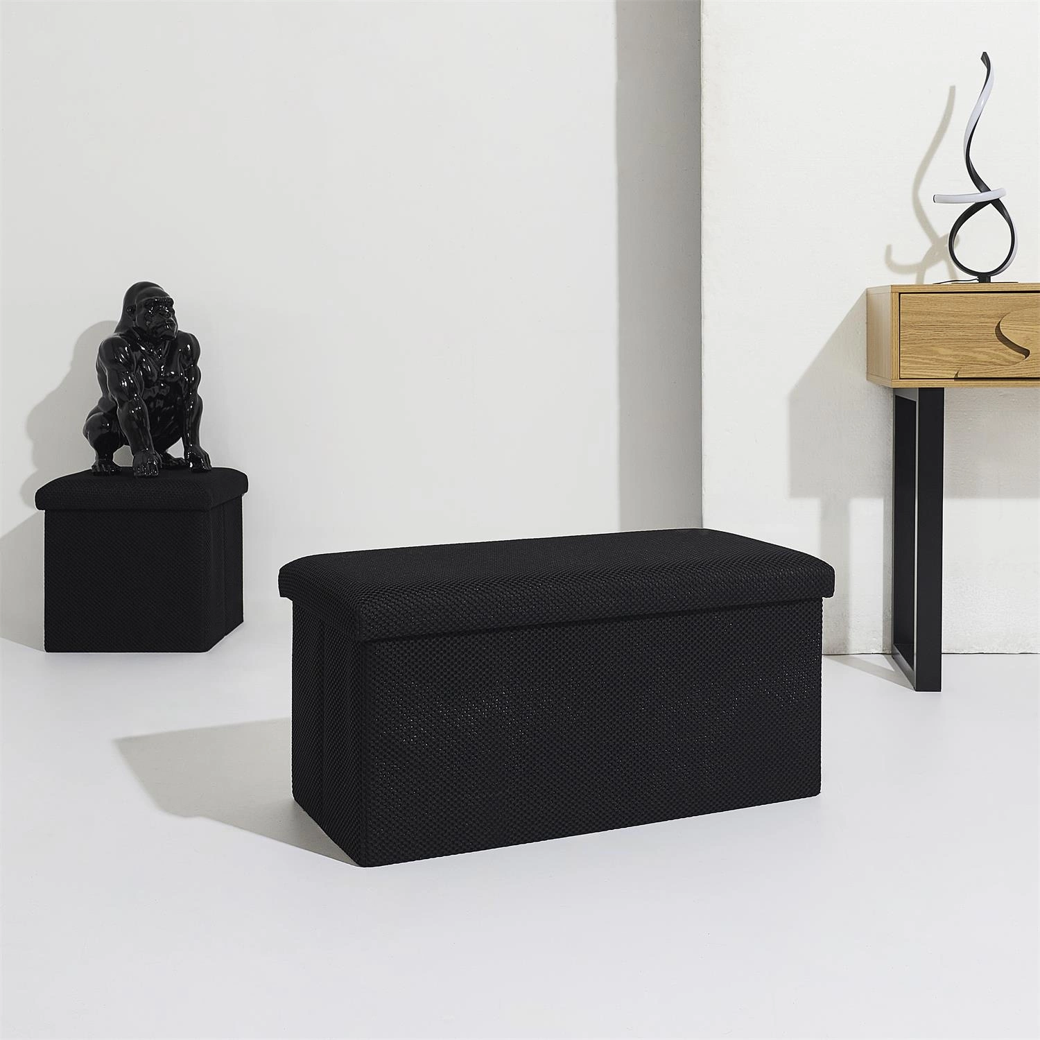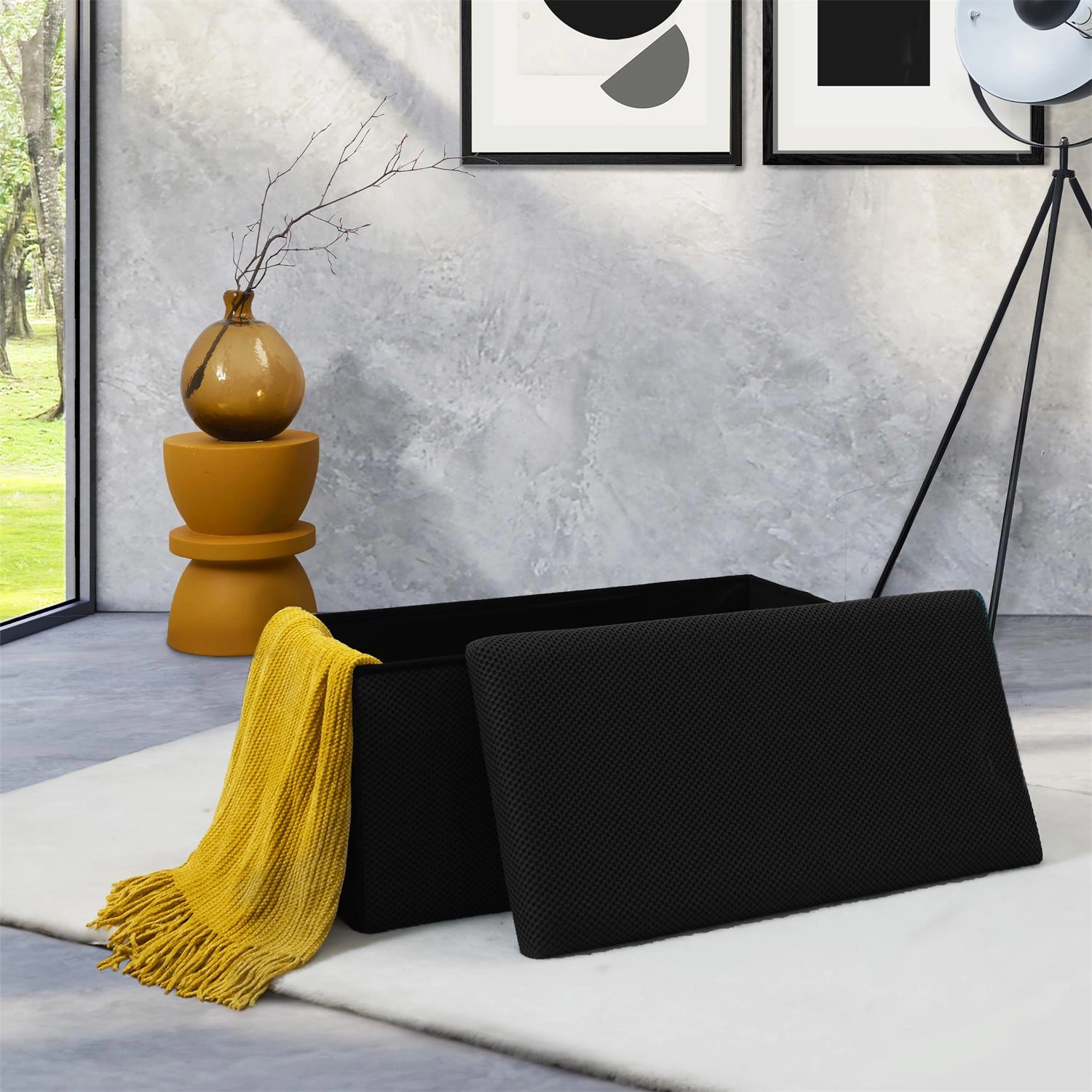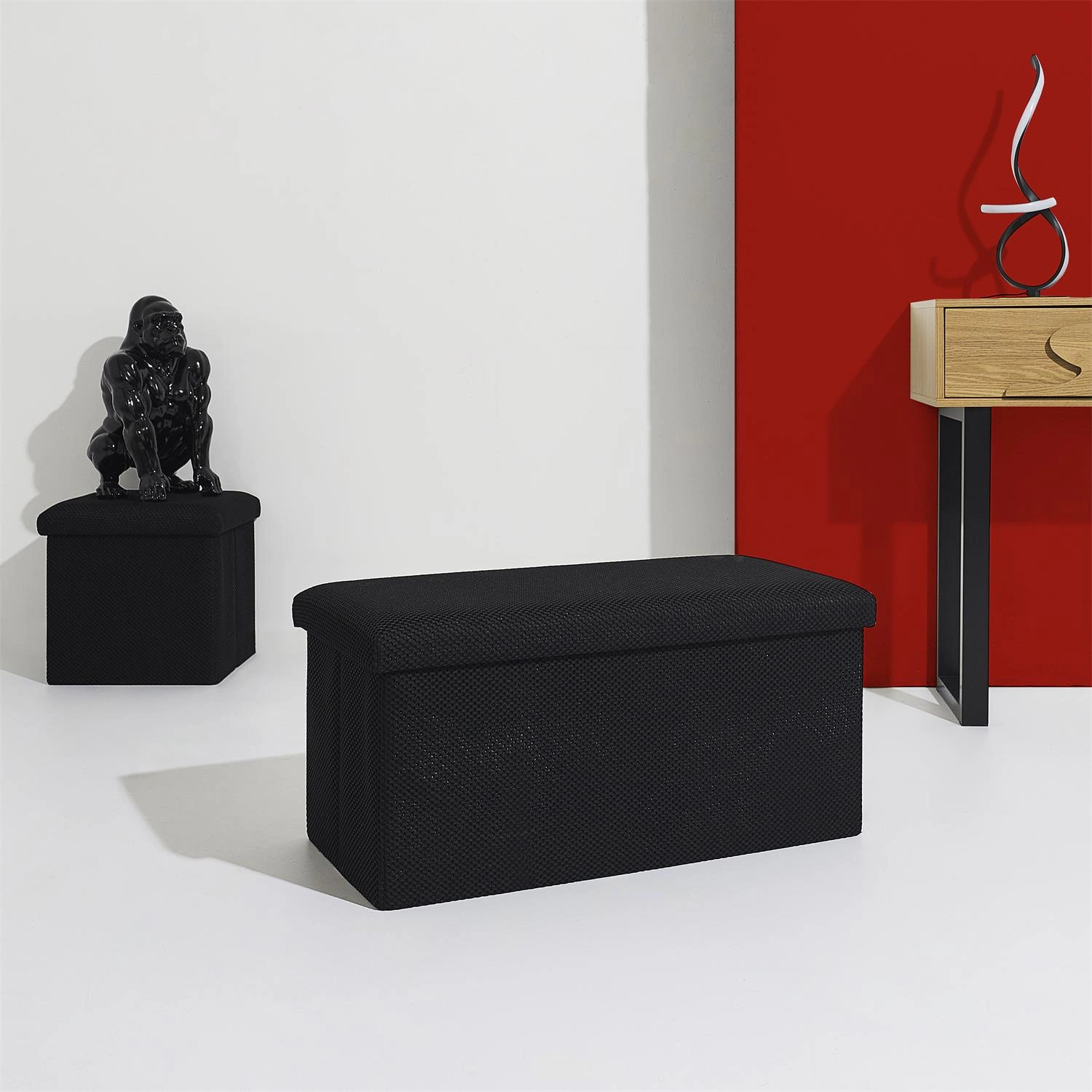 Pufa składana ze schowkiem Velse Atom marki Intesi to nowoczesny, prostokątny mebel tapicerowany w głębokiej czerni. Zaprojektowana z myślą o praktyczności – umożliwia wygodne siedzenie, a w pojemnym schowku bez trudu ukryjesz drobiazgi, buty czy zabawki. Kompaktowe wymiary: szerokość 76 cm, wysokość 38 cm i głębokość 38 cm sprawiają, że pufa doskonale odnajdzie się w przedpokoju, pokoju dziecięcym czy młodzieżowym.
