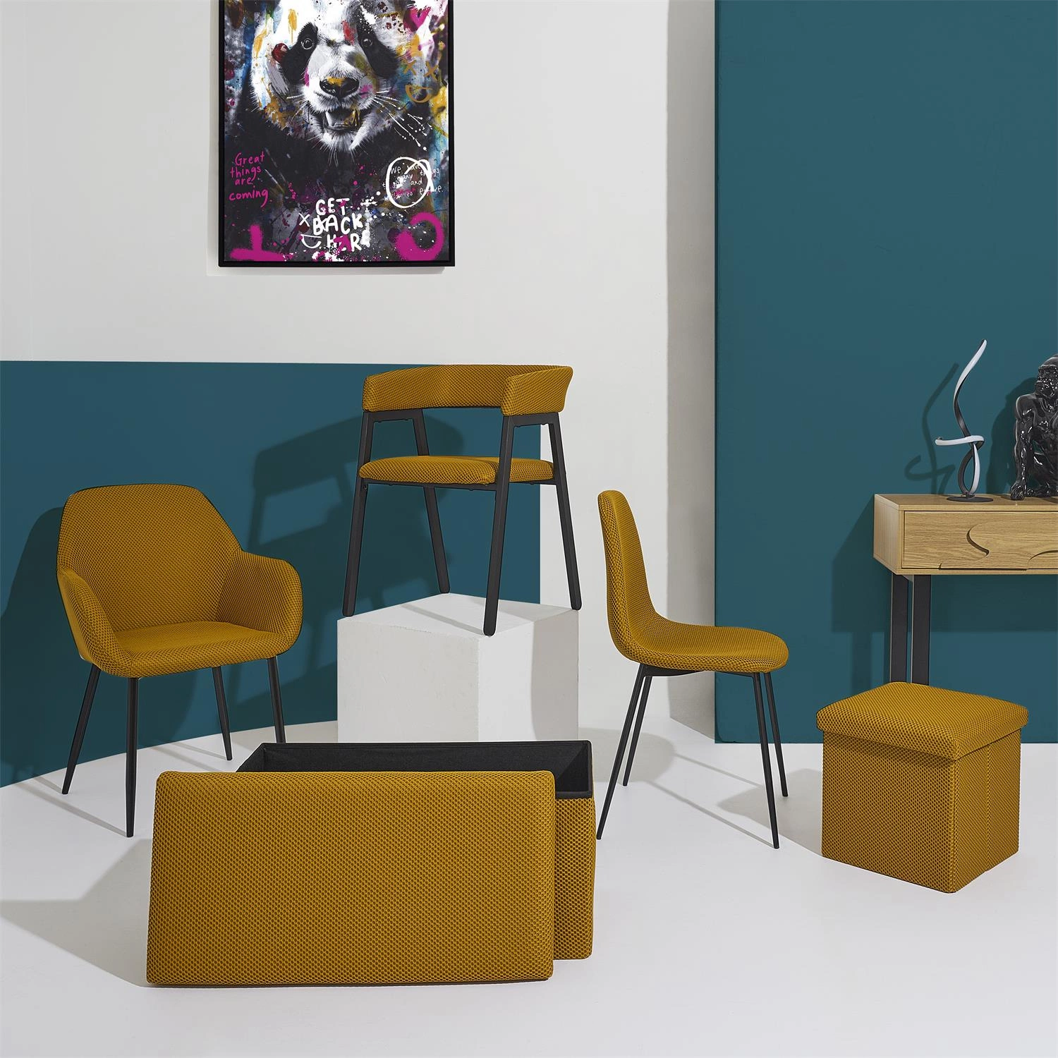 Pufa Intesi Vels Atom żółta doskonale sprawdzi się jako pufa do przedpokoju – wygodna przy zakładaniu butów i przechowywaniu drobiazgów, a także jako pufa dla dzieci – do pokoju młodzieżowego lub dziecięcego, gdzie zamieni się w skrzynię na zabawki lub książki. Dzięki nowoczesnej formie i praktycznym funkcjom, zyskujesz stylowy element wystroju oraz wszechstronne rozwiązanie do przechowywania, które łatwo dopasujesz do zmieniających się potrzeb domowników.