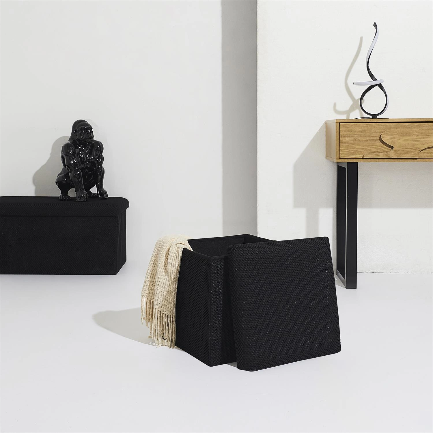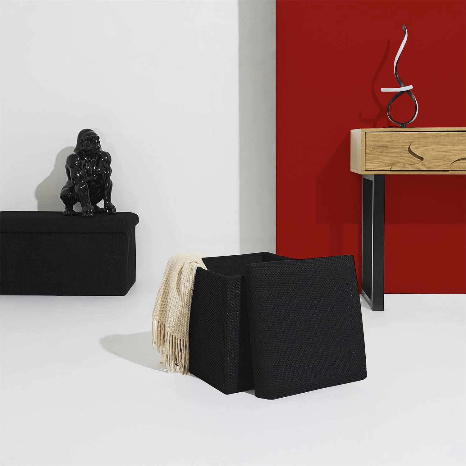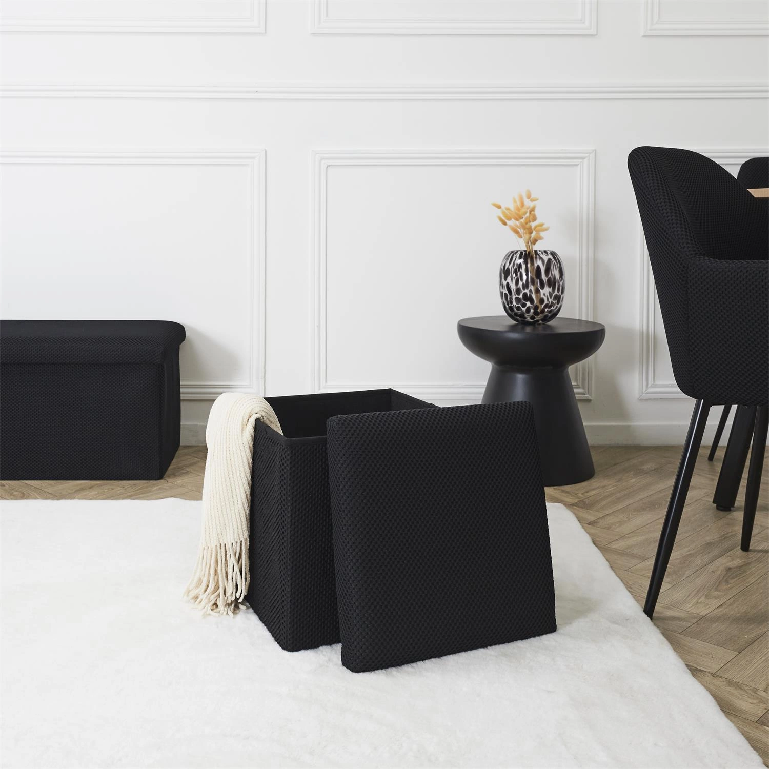 Pufa ze schowkiem Vels Atom czarna marki Intesi to kwadratowe, składane siedzisko, które łączy praktyczność z nowoczesnym stylem. Wykonana z miękkiej, przyjemnej w dotyku tkaniny, pufa oferuje komfort użytkowania oraz dyskretny pojemny schowek. Jej kompaktowe wymiary 38×38×38 cm sprawiają, że świetnie sprawdzi się w przedpokoju, pokoju młodzieżowym czy dziecięcym, pomagając utrzymać porządek i zapewniając wygodne miejsce do siedzenia.