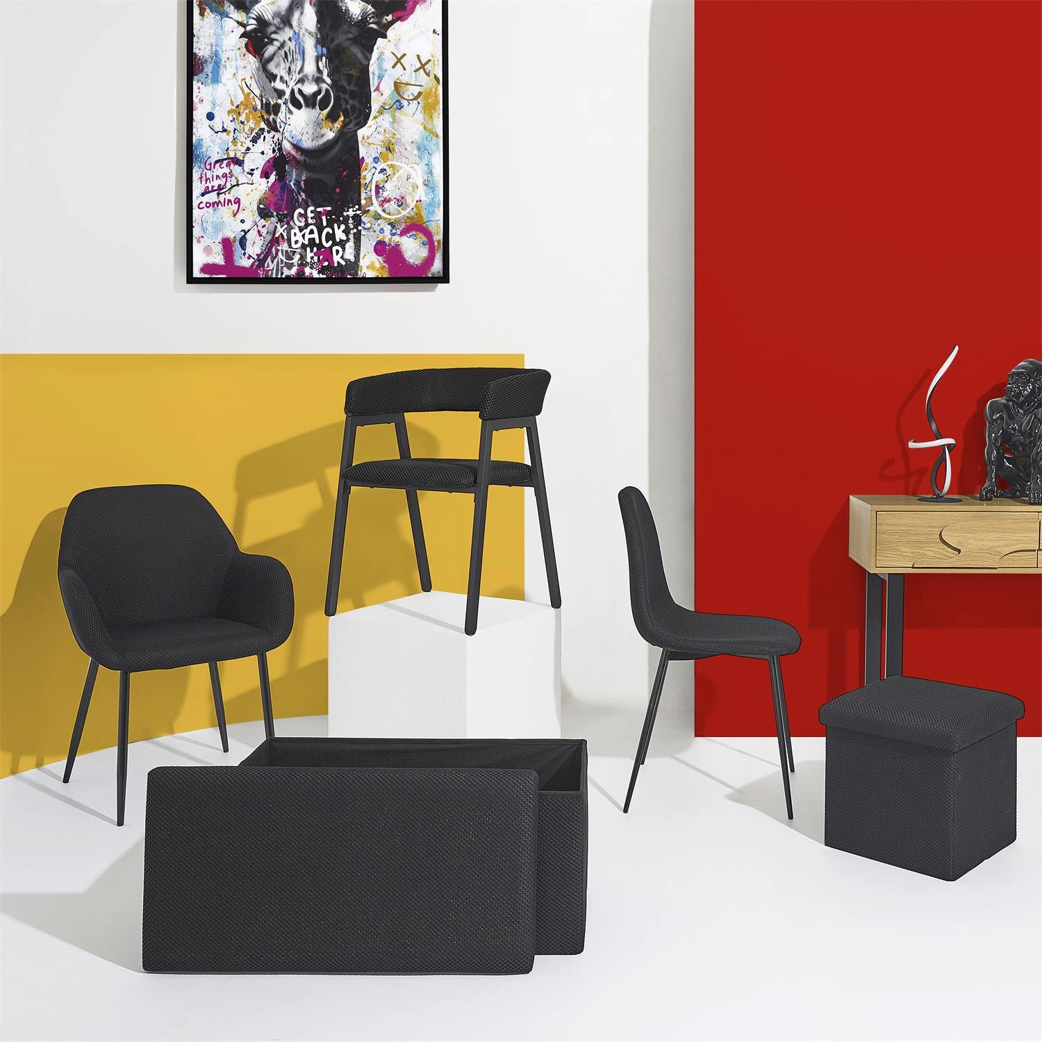 Czarna pufa kwadratowa z kolekcji Intesi zachwyca minimalistyczną formą i uniwersalnym odcieniem. Tapicerowane siedzisko zapewnia wygodę, a wytrzymała konstrukcja umożliwia użytkowanie przez osoby o wadze do 80 kg. Dzięki temu pufa może służyć zarówno jako siedzisko do przedpokoju, jak i praktyczny element do pokoju dziecięcego czy młodzieżowego.