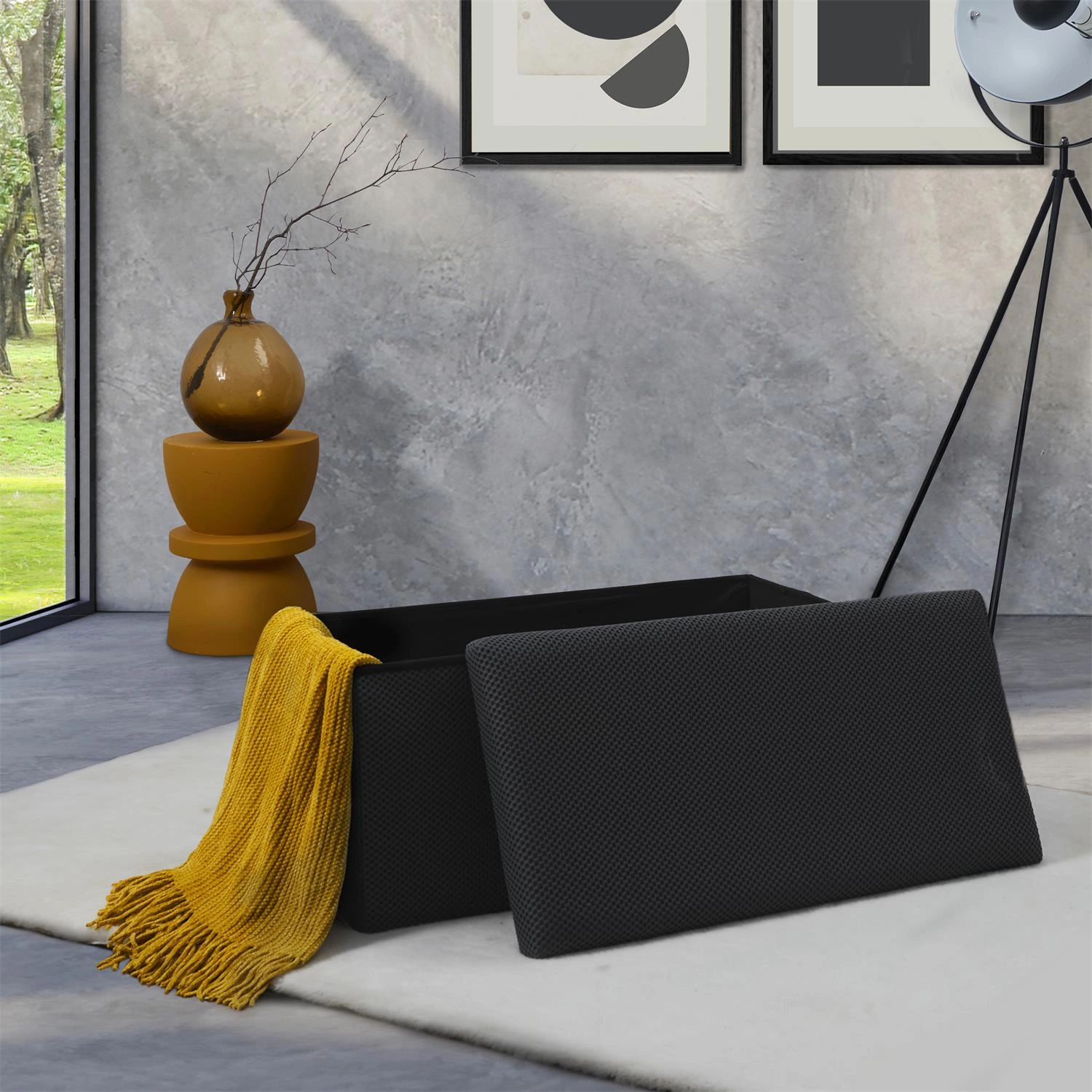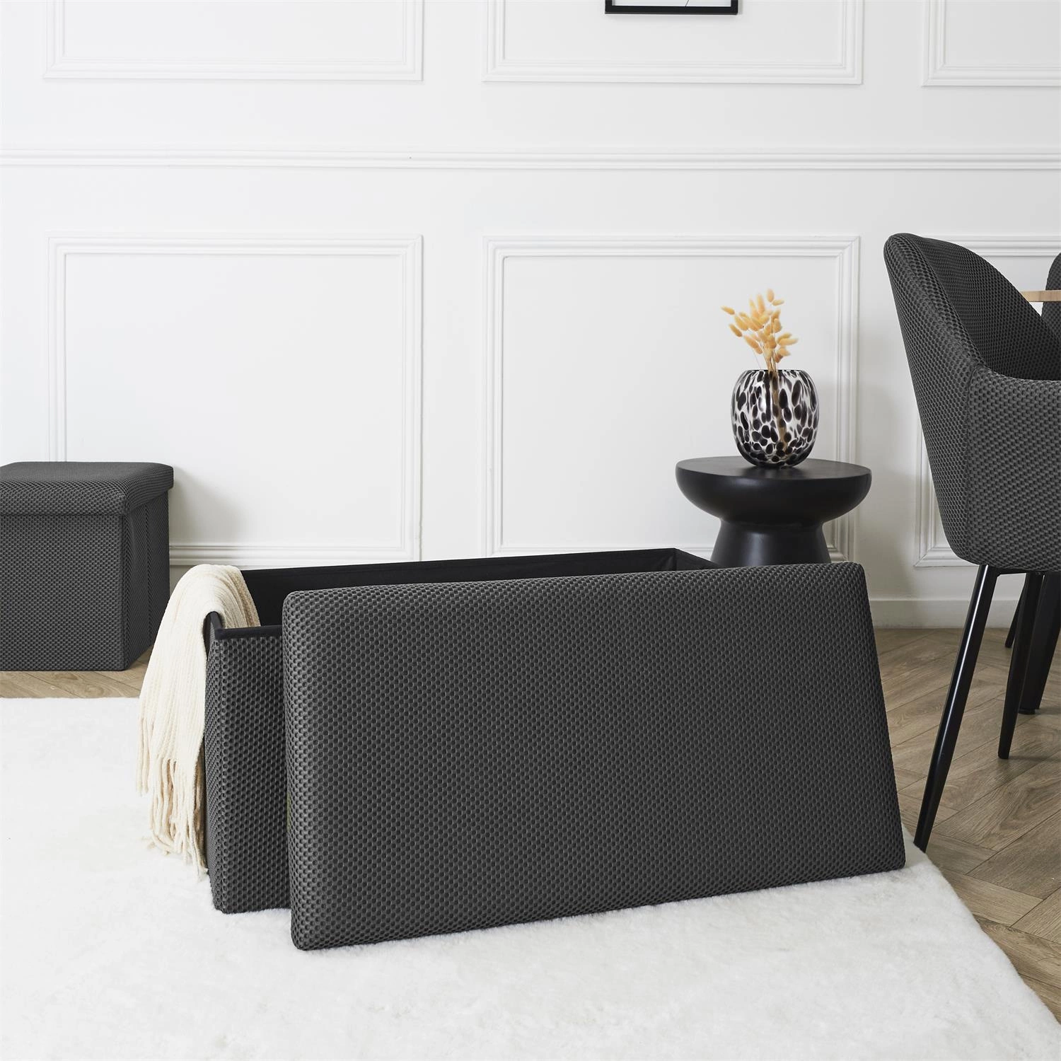 Niepozorna z wyglądu, pufa ze schowkiem Velse Atom to sprytne połączenie siedziska i praktycznego pojemnika. Jej szerokość 76 cm i głębokość 38 cm umożliwiają wygodne przechowywanie butów, zabawek, koców czy innych drobiazgów, które często nie mają swojego miejsca. Wysokość 38 cm sprawia, że możesz wykorzystać ją również jako komfortowe siedzisko podczas zakładania butów lub chwilę odpoczynku. Kiedy nie jest używana, łatwo ją złożyć i schować – to świetna opcja dla mniejszych wnętrz i osób, które cenią elastyczność aranżacji.