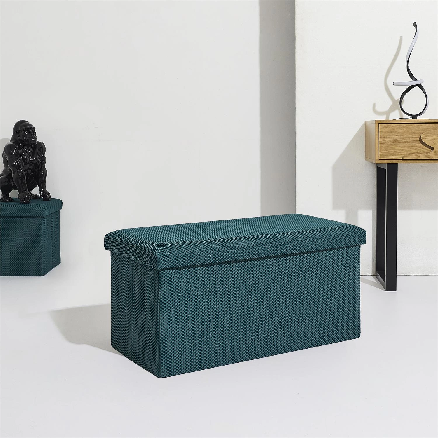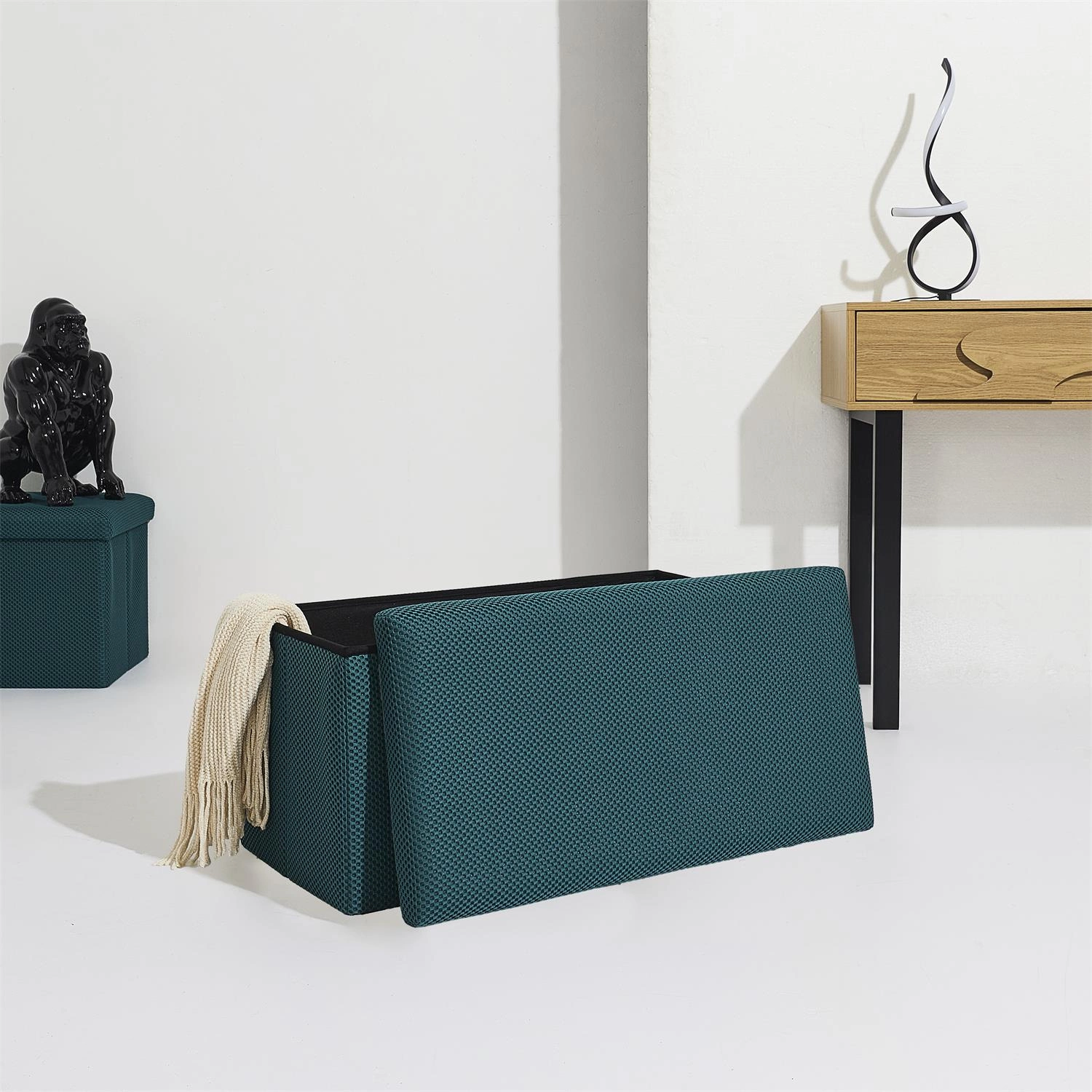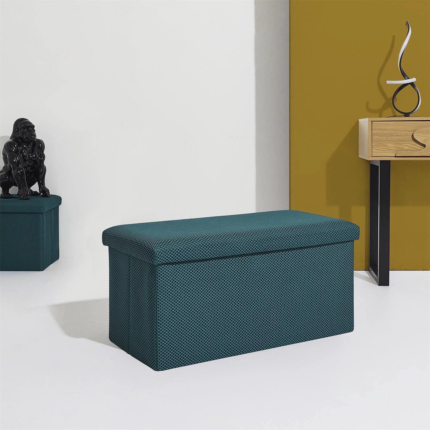 Pufa ze schowkiem Velse Atom marki Intesi to nowoczesny, prostokątny mebel tapicerowany w intensywnie turkusowym kolorze, który doskonale sprawdzi się jako praktyczne siedzisko w przedpokoju, pokoju dziecięcym czy młodzieżowym. Dzięki funkcji składania i pojemnemu schowkowi, pufa łączy wygodę codziennego użytkowania z możliwością przechowywania niezbędnych drobiazgów. Solidna konstrukcja zapewnia maksymalne obciążenie do 80 kg, a miękka tkanina gwarantuje komfort przy każdym usiąściu.