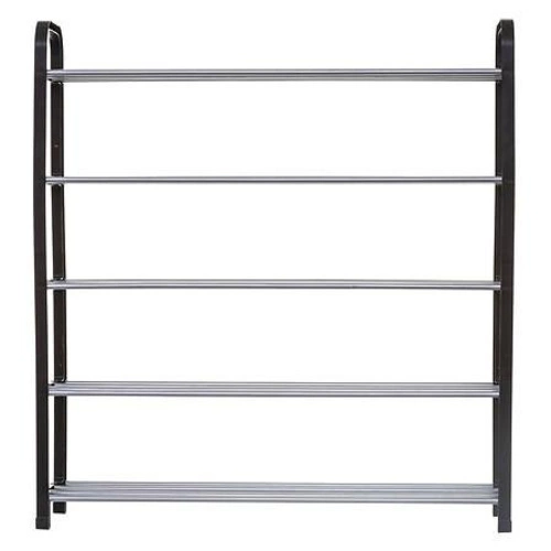 Czarny regał na buty Plasmi marki 5five simply smart to nowoczesny mebel do przedpokoju, który wyróżnia się industrialnym designem oraz praktyczną konstrukcją z pięcioma pojemnymi półkami. Wykonany z trwałego metalu i solidnych tworzyw, zapewnia stabilność i trwałość na lata. Dzięki szerokości 70,5 cm i głębokości zaledwie 19 cm, regał Plasmi skutecznie zagospodaruje nawet wąskie przestrzenie, pomagając zachować porządek i elegancję w Twoim wnętrzu.