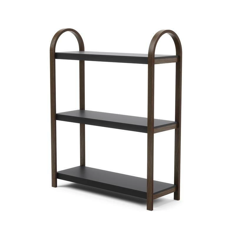 Regał Bellwood posiada trzy szerokie półki z płyt MDF w okleinie oraz szkielet z drewna w kolorze ciemnego orzecha. MDF to wytrzymały materiał, który odporny jest na zniszczenia. Cechą charakterystyczną regału jest zaokrąglona górna część, która całej konstrukcji dodaje wizualnej lekkości. Oprócz świetnego aspektu wizualnego regał to także wiele miejsca do przechowywania. To doskonałe miejsce na ulubione książki, kwiatki czy innego rodzaju dekoracje. Bellwood dostępny także w kolorze białym z naturalnym wykończeniem. Zdecyduj, który lepiej wkomponuje się w twoje wnętrza!