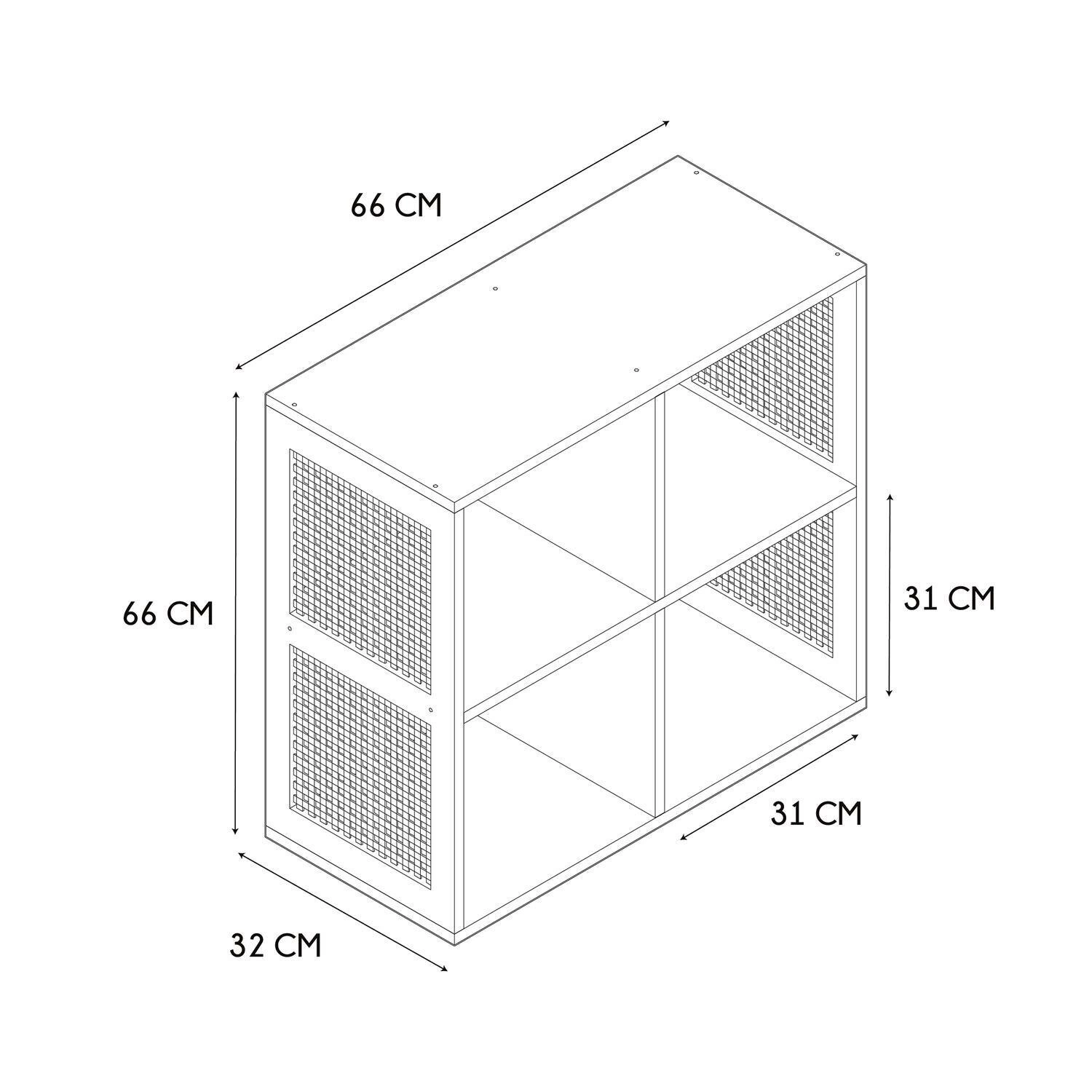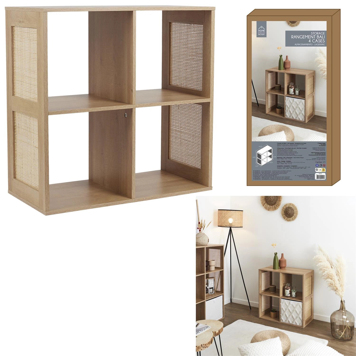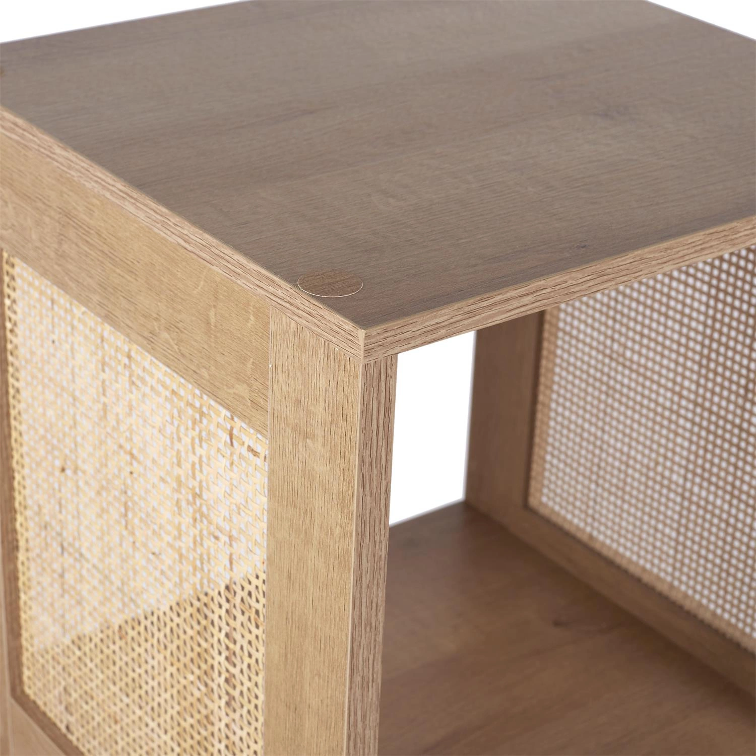 Regał na książki Kali marki Intesi to funkcjonalny mebel o wymiarach 66×66×32 cm, wykonany z wysokiej jakości płyty MDF oraz naturalnego rattanu. Cztery pojemne półki zapewniają miejsce na ulubione książki, dekoracje czy akcesoria codziennego użytku. Uniwersalny, naturalny kolor dębu i subtelne, skandynawskie wzornictwo sprawiają, że regał Kali doskonale odnajdzie się zarówno w salonie, jak i sypialni, gabinecie czy pokoju dziecka.