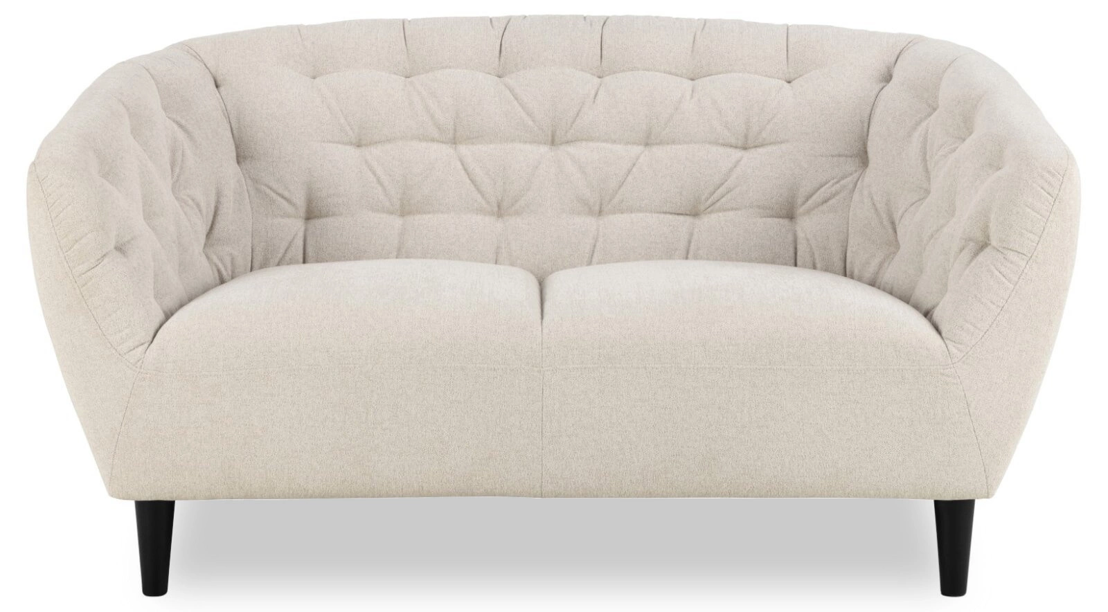 2-osobowa sofa Ria w beżowym kolorze to prawdziwy majstersztyk designu. Jej zaokrąglone kształty i delikatnie pikowane detale sprawiają, że jest nie tylko wygodna, ale i niezwykle elegancka. Wykonana z wysokiej jakości tkaniny o ciekawej fakturze, która jest miła w dotyku i dodaje uroku całości. Czarne, drewniane nóżki o okrągłym kształcie dodają sofcie stabilności, a jednocześnie podkreślają jej klasyczny charakter.