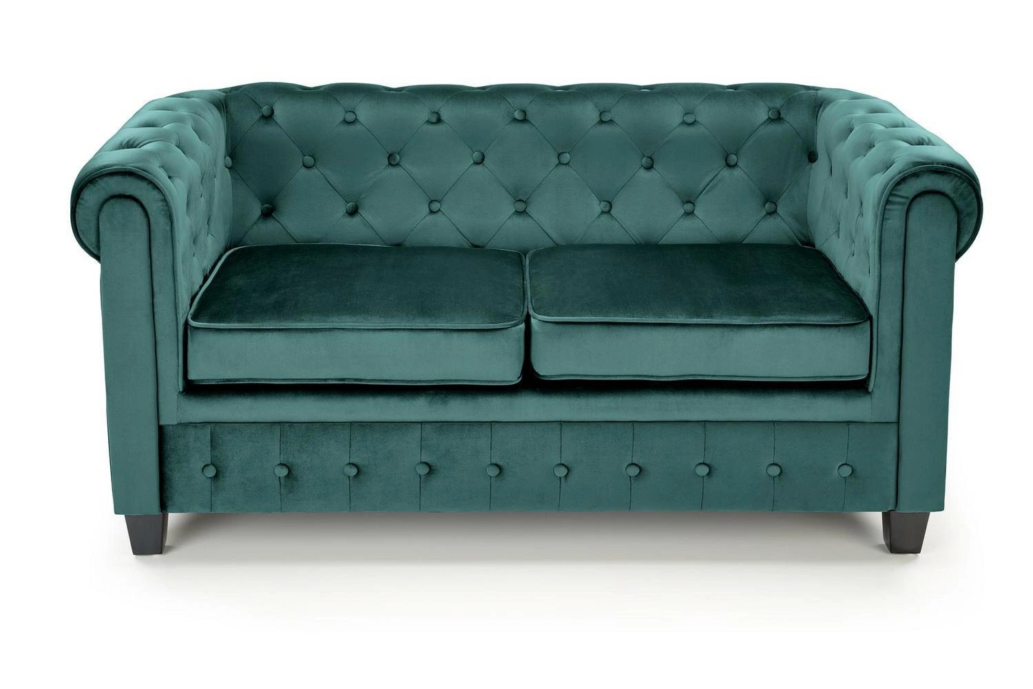Tapicerowana aksamitna sofa Dassion zielona - Intesi Uzyskaj luksusowy wygląd dzięki sofie Dassion od Intesi. Wykonany z miękkiej aksamitnej tapicerki i podstawy z litego drewna, wyrafinowany mebel jest w kolorze zielonym z czarnymi nogami dla eleganckiego wykończenia. Przedstawiamy luksusową sofę Dassion, nowoczesny i stylowy dodatek do Twojego wnętrza. Wyjątkowy mebel posiada przyciągającą wzrok aksamitną tapicerkę w eleganckim zielonym odcieniu, która wniesie ciepło i osobowość do każdej przestrzeni. Nogi z litego drewna stanowią solidną podstawę, jednocześnie nadając meblowi stylowego charakteru. Wymiary 152 cm x 75 cm x 73 cm sprawiają, że ta średniej wielkości sofa będzie idealnie pasować do salonu lub sypialni, zapewniając jednocześnie wystarczająco dużo miejsca do siedzenia dla dwóch osób. Z pewnością będzie to idealne miejsce na rodzinne wieczory filmowe i relaksujące sesje z przyjaciółmi. Dlaczego więc nie zafundować sobie (i swojemu salonowi) sofy Dassion? Dzięki zabawnemu kolorowi i niezawodnej konstrukcji z pewnością stanie się ukochanym klasykiem w Twoim domu. O tym warto pamiętać! Luksusowa aksamitna tkanina zapewniająca doskonały wygląd i dotyk Podstawa z litego drewna dla większej wytrzymałości i trwałości Subtelne, ale uderzające połączenie kolorystyczne tapicerki i czarnych nóżek Kompaktowe wymiary z łatwością zmieszczą się w większości przestrzeni Duża głębokość siedziska 75 cm zapewnia komfort i przytulność