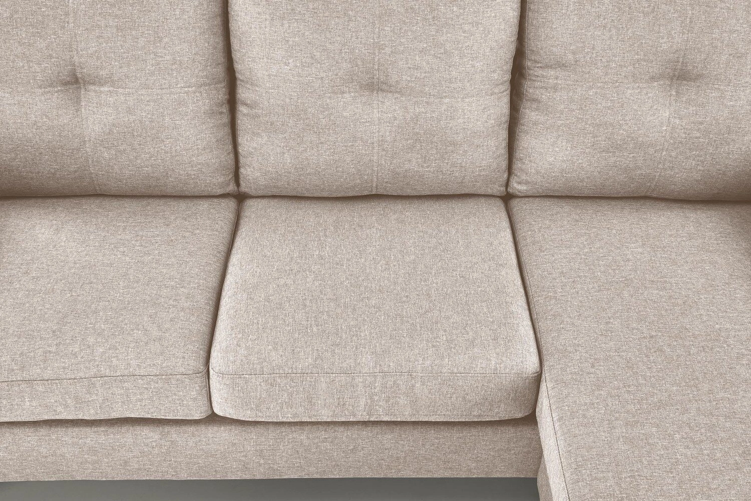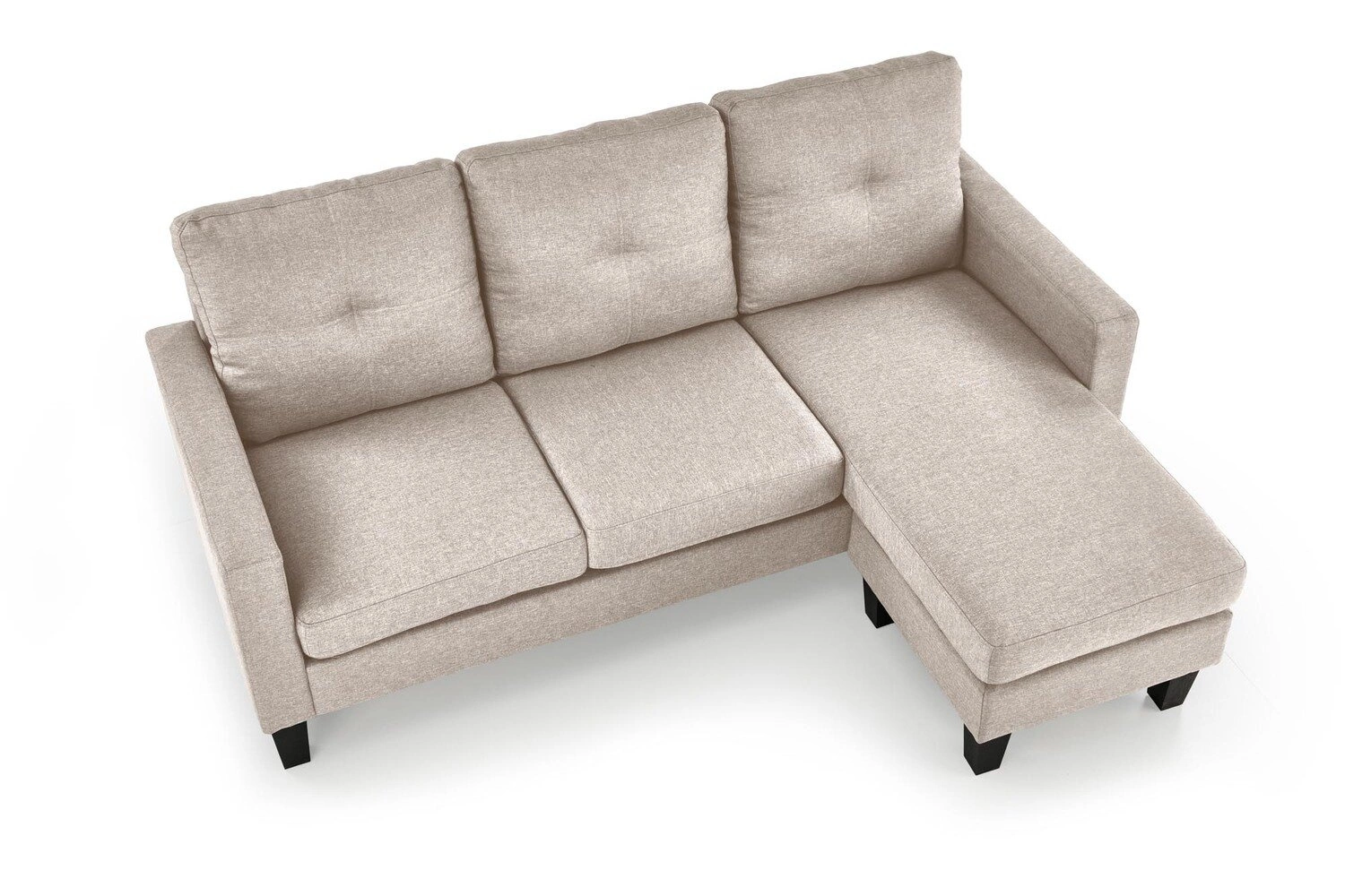 Beżowy kolor sofy Kahs jest uniwersalny i łatwo komponuje się z różnymi stylami wnętrz. Tkanina użyta do obicia jest miękka w dotyku i dodaje elegancji całej konstrukcji. Polipropylenowa podstawa gwarantuje solidność i stabilność, jednocześnie podkreślając nowoczesny charakter mebla. Sofa z podnóżkiem Kahs to nie tylko praktyczny element wyposażenia, ale również stylowy dodatek, który wnosi ciepło i przytulność do każdego pomieszczenia.