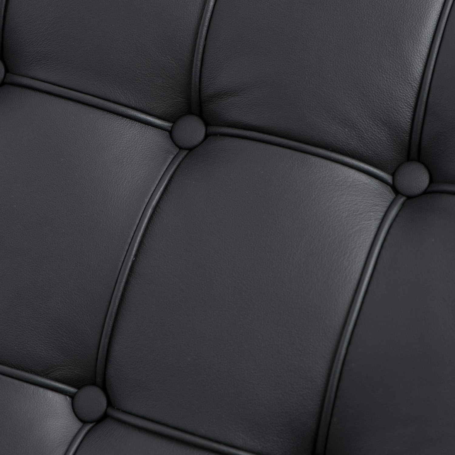 Jest to zaprojektowana w 1929 roku sofa, która powstał na zamówienie, i stanęła w niemieckim pawilonie na wystawie w Barcelonie.,Charakterystycznie powyginana w kształt litery "X" chromowana podstawa oraz pikowana w kwadraty skóra naturalna to najbardziej charakterystyczne cechy tego produktu. Cała kolekcja Barcelona to fotel z podnóżkiem, sofy, ławki, leżanka i stolik.,Sofa wykonana jest ze skóry naturalnej.,Prezentowany produkt jest inspirowany projektem Barcelona.,