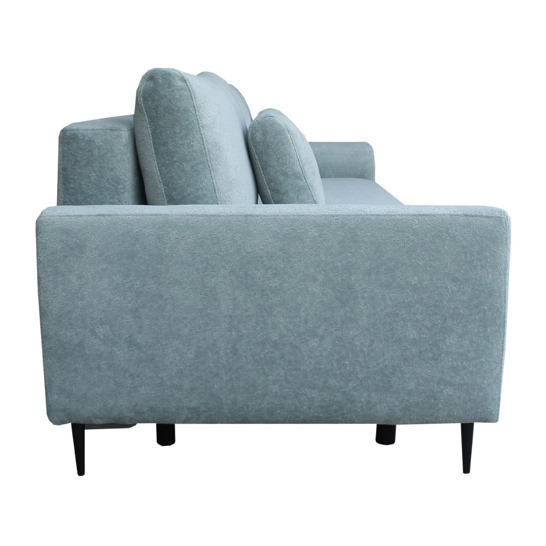 Sofa Ferrero zachwyca minimalistycznym, lekko zaokrąglonym kształtem i delikatną linią podłokietników, doskonale wpisując się w skandynawskie aranżacje. Odcień głębokiego niebieskiego tkaniny Bellini wnosi świeżość i energię do przestrzeni, a czarne, smukłe nogi z metalu podkreślają nowoczesny charakter mebla. Ten model świetnie odnajduje się zarówno w jasnych, jak i bardziej wyrazistych salonach, stając się nie tylko miejscem relaksu, ale także ozdobą wnętrza.