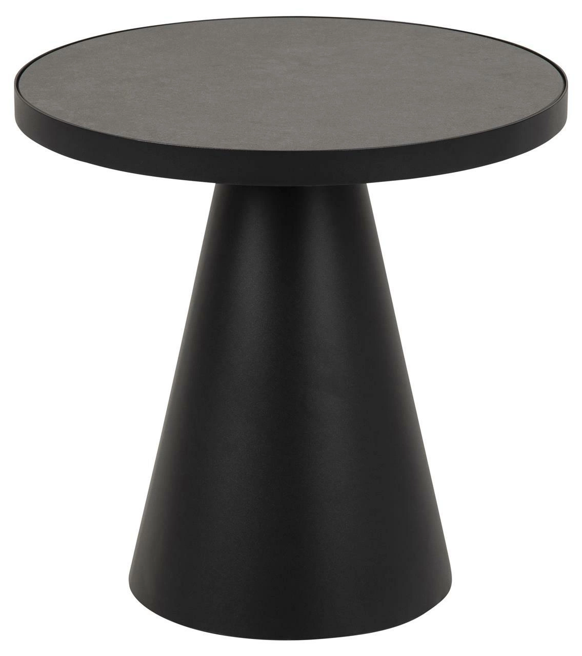 Stolik kawowy Soli to wzornictwo w stylu Art deco. Efektowny i geometryczny kształt stolika sprawdzi się nawet w niewielkim salonie. Okrągły blat został wykonany z ceramiki oraz szkła w kolorze szarym, a opiera się na czarnej rozszerzającej się podstawie o matowym wykończeniu. Dzięki temu mamy pewność, że jest to wytrzymały stolik kawowy, który posłuży nam długie lata.