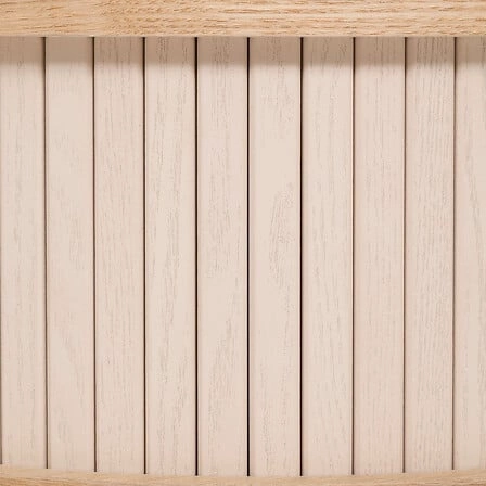 - Wyposażony w przesuwane drzwi z listew i regulowaną półkę, co pozwala na dowolne dostosowanie przestrzeni do przechowywania.