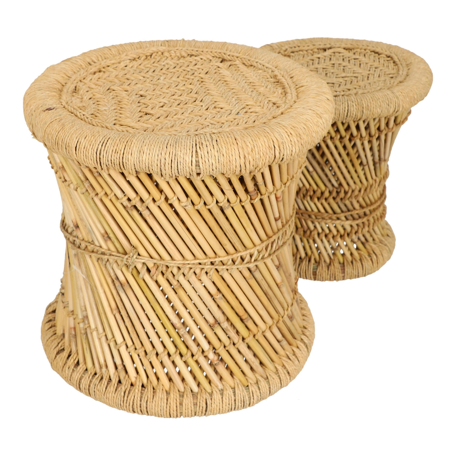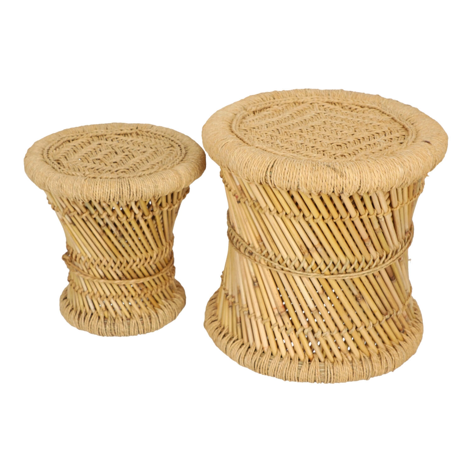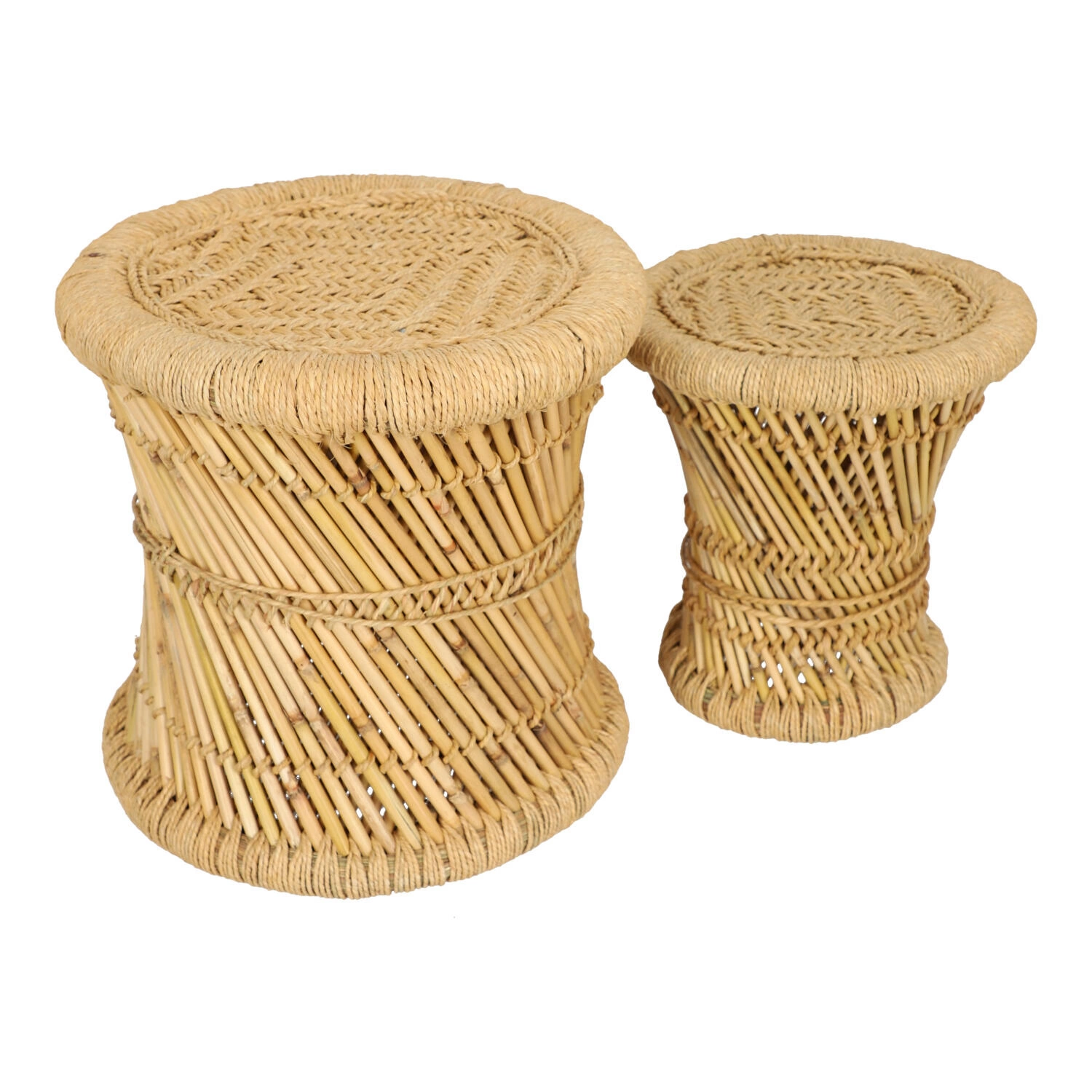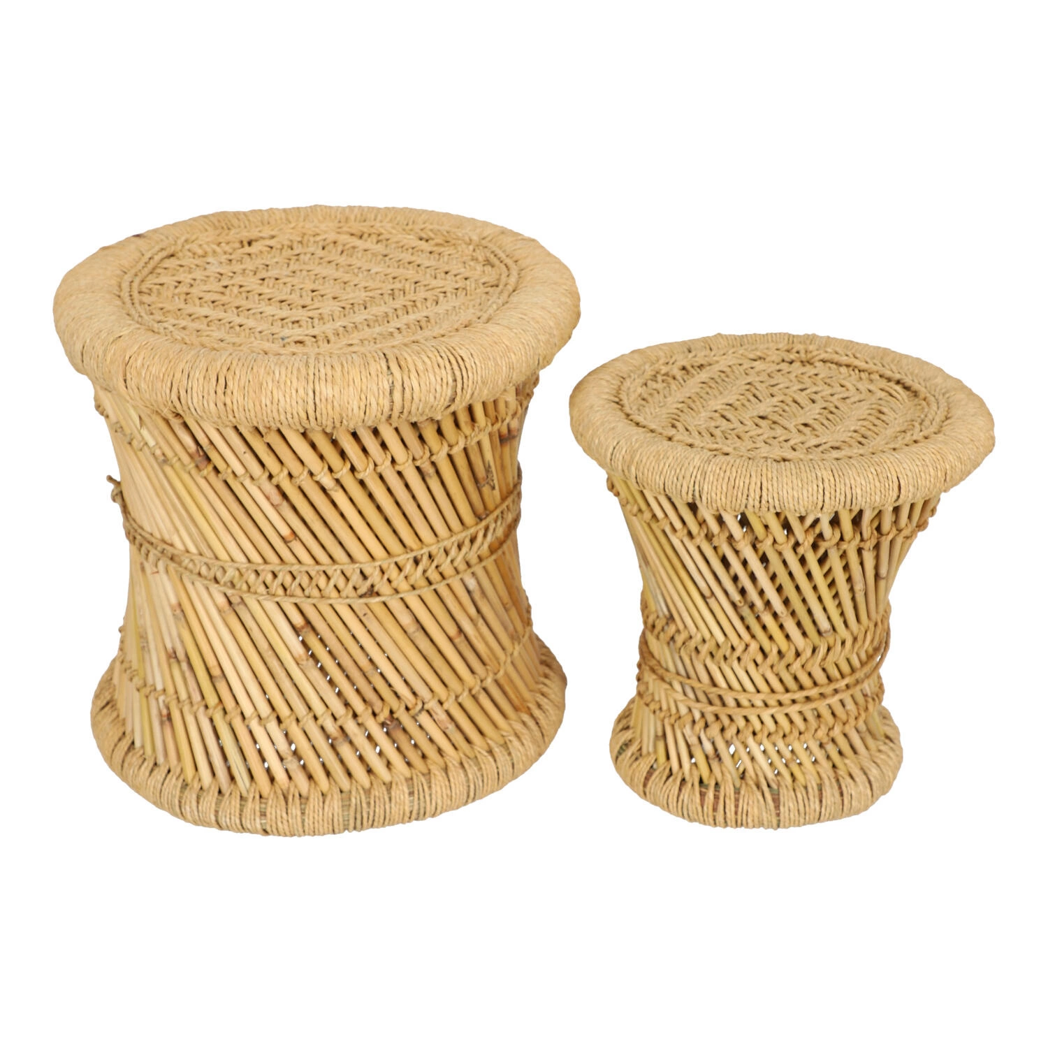 Zestaw 2 okrągłych stolików kawowych boho Corde z bambusa i konopi do salonu Atmosphera – naturalny akcent w nowoczesnym wnętrzu