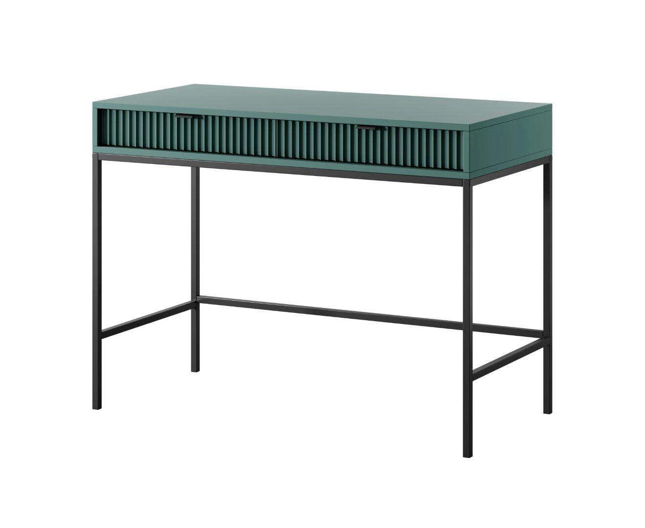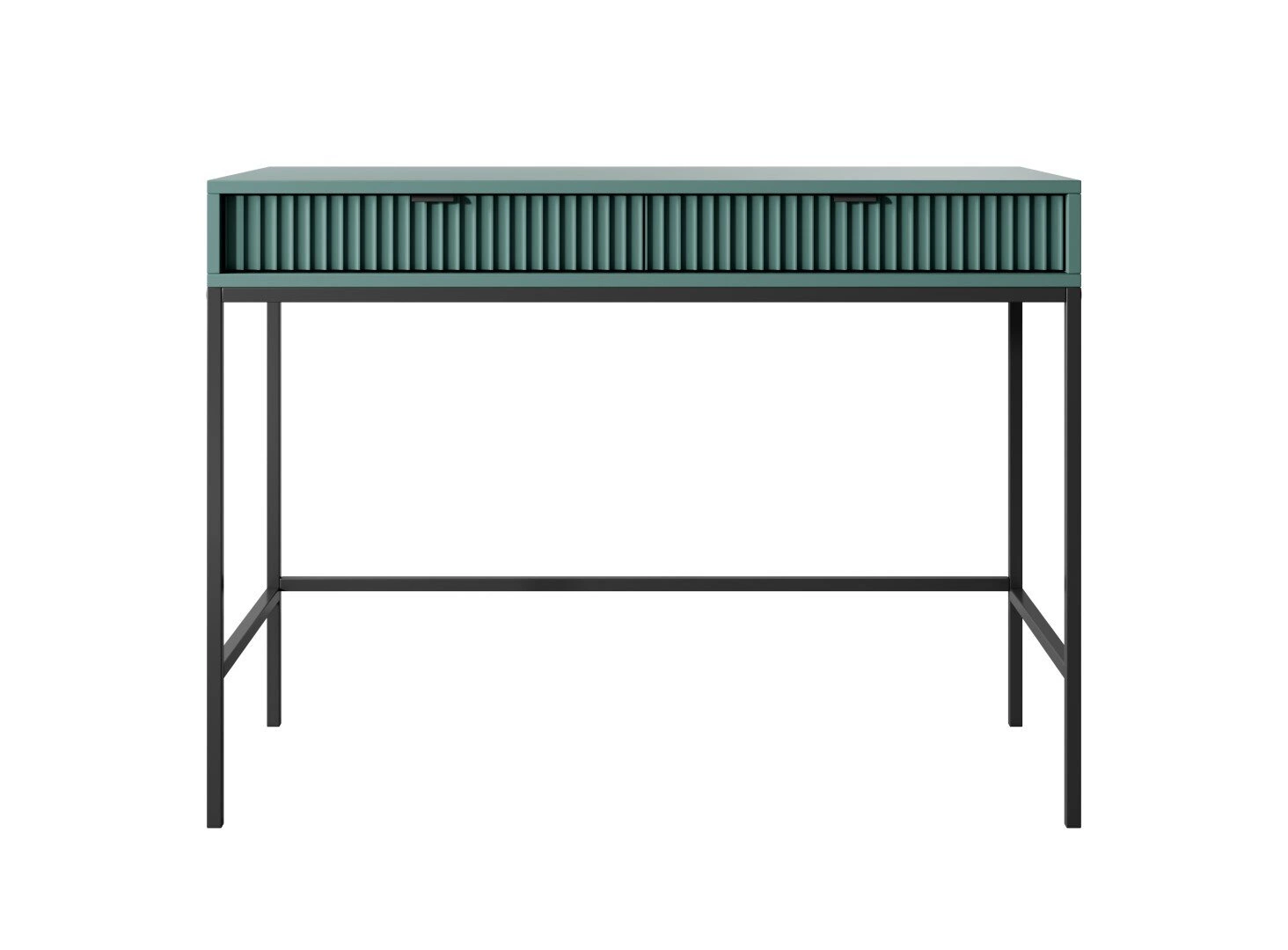 Kolor zielony toaletki Delicious dodaje jej oryginalności i świeżości. Czarne uchwyty i podstawa stanowią kontrast dla jasnej powierzchni, tworząc wyrafinowany i nowoczesny wygląd. Ta toaletka jest nie tylko atrakcyjna, ale również praktyczna. Dzięki wysokim nogom, łatwo jest pod nią odkurzyć oraz wytrzeć podłogę, co sprawia, że jest idealna do codziennego użytku.