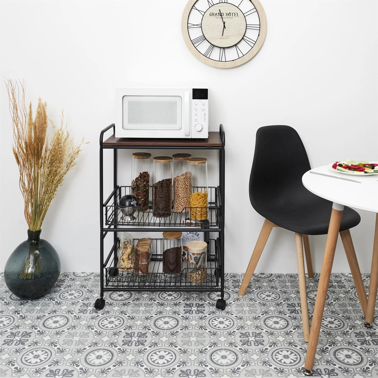 Dzięki swojej konstrukcji Dolie sprawdzi się jako wózek barowy na kółkach do serwowania drinków podczas spotkań towarzyskich, pomocniczy stolik w kuchni czy jadalni, a nawet praktyczny organizer w domowym biurze. Dwie dodatkowe półki zapewniają miejsce na szklanki, butelki, przekąski lub akcesoria, dzięki czemu wszystko, czego potrzebujesz, masz zawsze w zasięgu ręki. Maksymalne obciążenie wózka to 30 kg – bez obaw możesz przechowywać na nim nawet cięższe przedmioty.