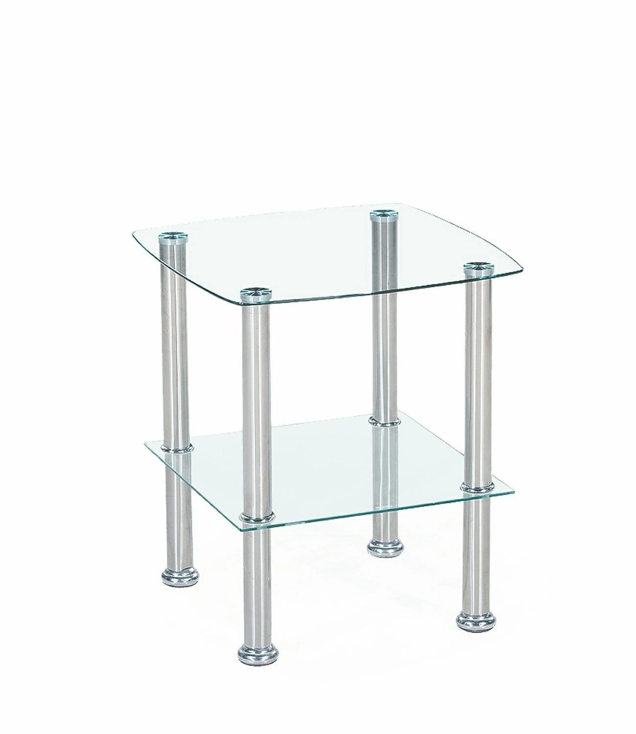 Blat kwadratowy o wymiarach 45/45 cm zapewnia odpowiednią powierzchnię do postawienia kawy, herbaty lub ulubionej książki. Dodatkowo, półka dolna pozwala na przechowywanie czasopism, pilotów lub innych drobiazgów, co sprawia, że stolik jest nie tylko estetyczny, ale również funkcjonalny. Srebrny kolor stelaża i chromowany kolor blatu dodają elegancji i stylu temu meblowi, który będzie pasował do każdego wystroju. Wymiary 45/45/51 cm sprawiają, że stolik kawowy nie zajmuje zbyt wiele miejsca, a jednocześnie jest wystarczająco duży, aby pomieścić wszystko, czego potrzebujesz.