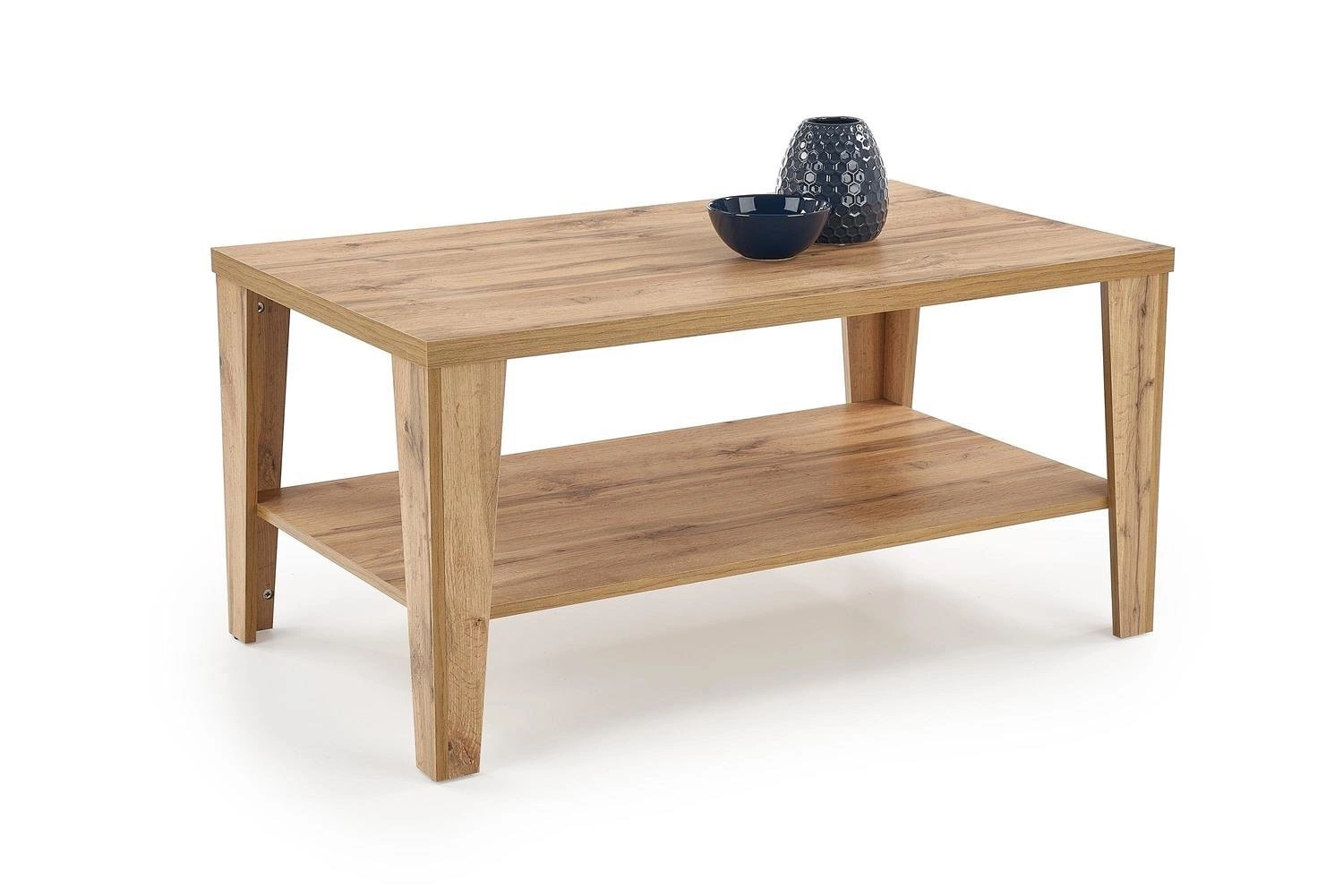 Przedstawiamy stolik kawowy Deya, idealny dodatek do każdego nowoczesnego salonu! Solidny i stylowy, tradycyjny stolik z dębową ramą idealnie wpasuje się w każdy wystrój. Wykonany z wysokiej jakości laminatu MDF, stolik kawowy z łatwością wyróżnia się ponadczasowym designem i solidną konstrukcją, zapewniając luksusowy wygląd, który trwa. Dolna półka zapewnia dodatkową stabilność i idealne miejsce do przechowywania książek lub czasopism. Dzięki prostokątnemu kształtowi, szerokości 110 cm i wysokości 54 cm, elegancki stolik kawowy z pewnością przypadnie do gustu. Spraw, aby Twój dom był kompletny i dodaj mu wyrafinowania dzięki stolikowi kawowemu Deya już dziś!