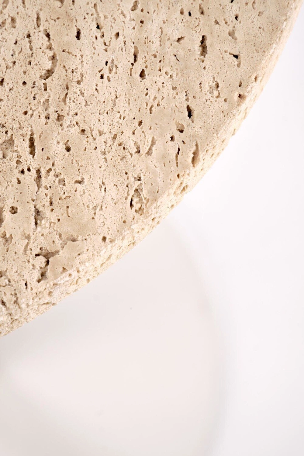 Stolik kawowy Epkos niski to idealne połączenie elegancji i funkcjonalności, które wprowadzi do Twojego wnętrza wyjątkowy akcent. Jego okrągły blat wykonany z trawertynu, naturalnego kamienia o subtelnej, ciepłej kolorystyce, nadaje stolikowi luksusowy i jednocześnie organiczny wygląd. Trawertyn jest nie tylko piękny, ale także trwały i łatwy do utrzymania w czystości, co sprawia, że stolik ten jest praktycznym wyborem do codziennego użytku.