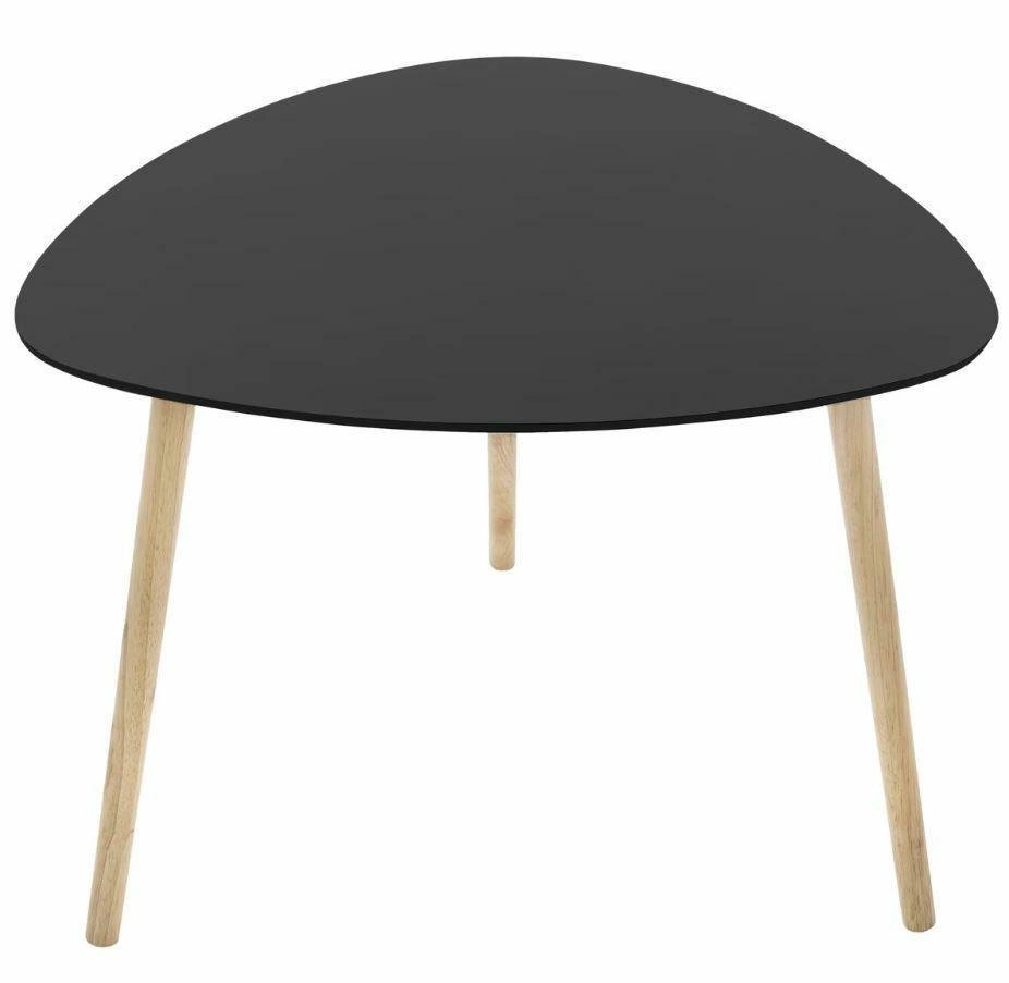 Stolik w stylu skandynawskim z czarnym blatem i drewnianymi, sosnowymi nogami sprawdzi się jako stolik przy sofie lub stolik pomocniczy. Odporna na uderzenia płyta MDF, z której wykonano blat jest łatwa w czyszczeniu.