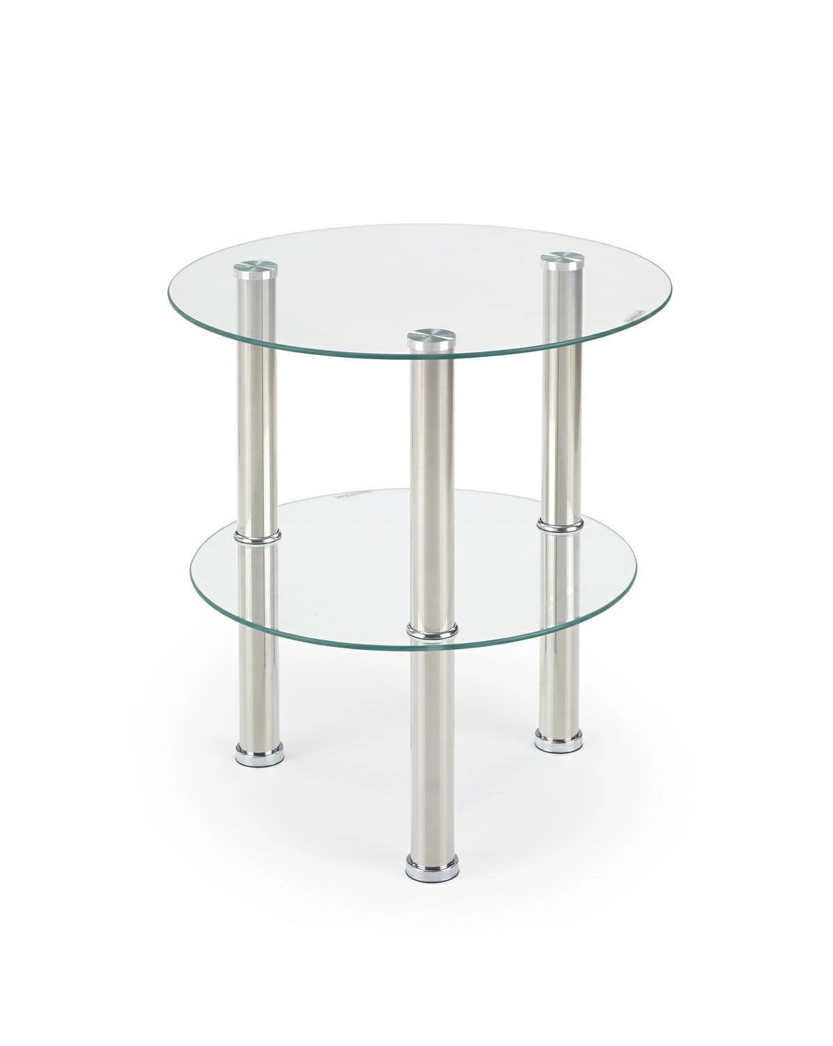 - Elegancki design: Stolik kawowy Sable o kształcie okrągłym i kolorze transparentnym i w chromie dodaje nowoczesności i glamouru do każdego wnętrza