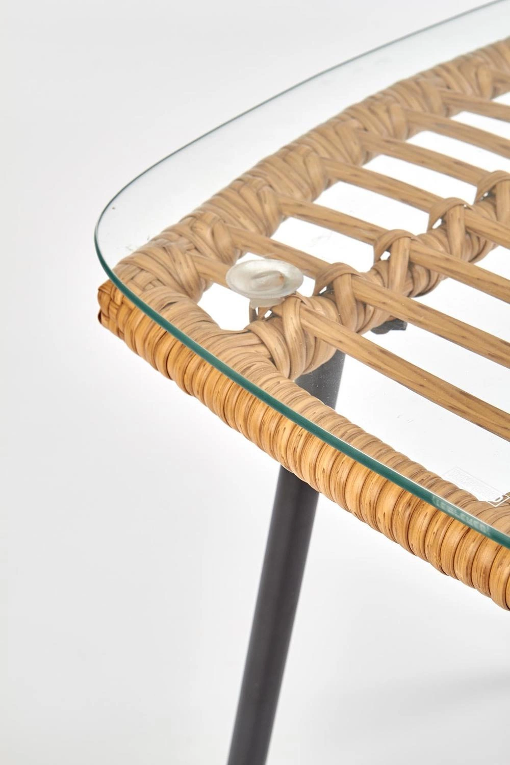 - Funkcjonalność i praktyczność dzięki kwadratowemu blatu z rattanu syntetycznego oraz szkła