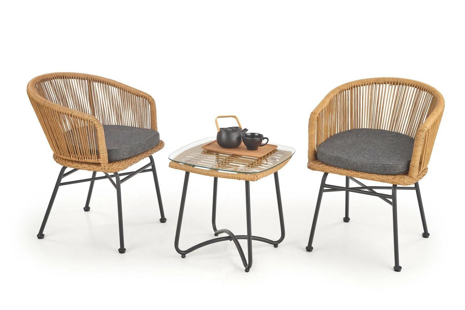 - Funkcjonalność i praktyczność dzięki kwadratowemu blatu z rattanu syntetycznego oraz szkła