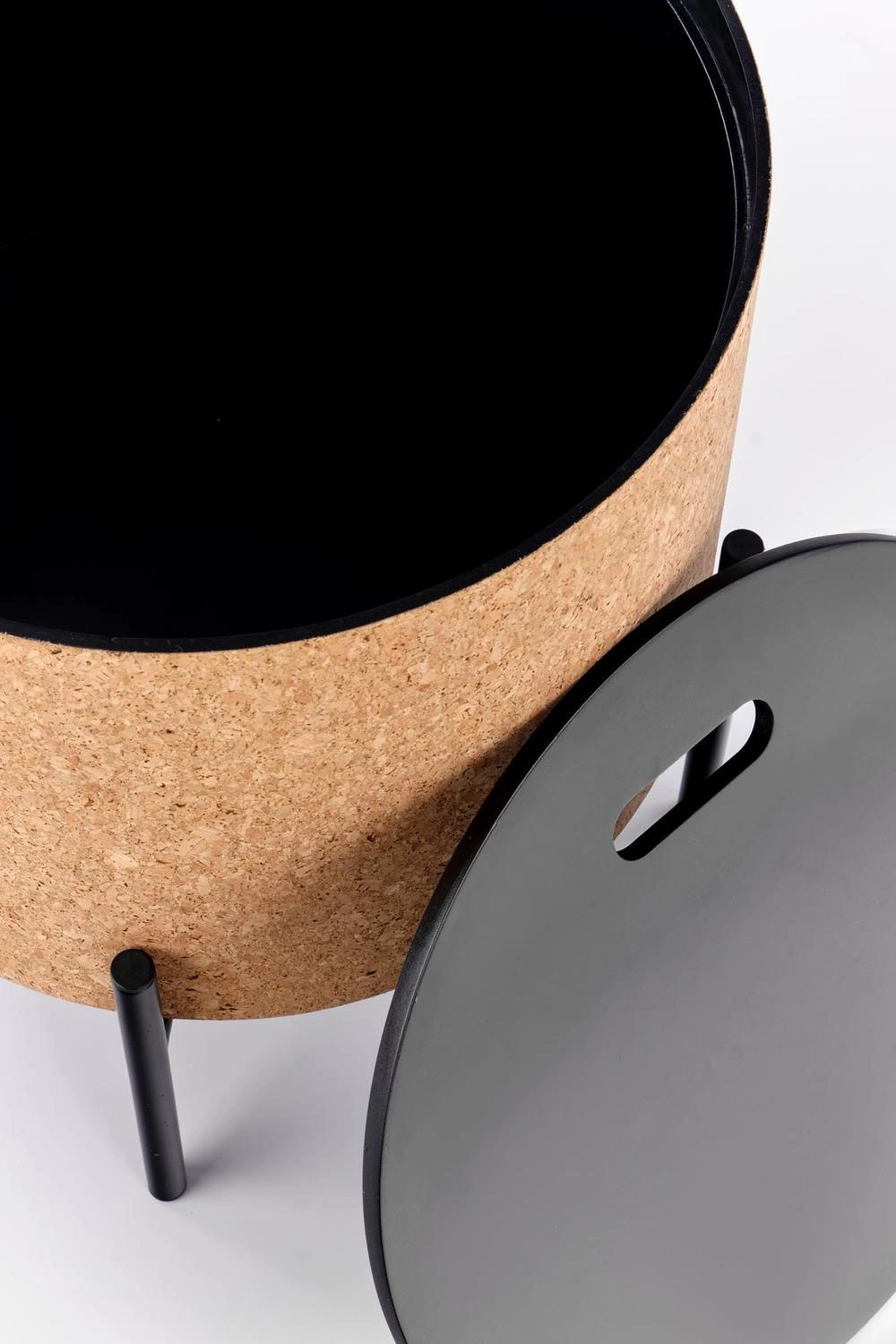 - Estetyka - Kolor naturalny/czarny oraz materiały użyte do produkcji (MDF + korek / MDF lakierowany / stal malowana, proszkowo) nadają stolikowi elegancki i nowoczesny wygląd, który będzie pasować do różnych wnętrz