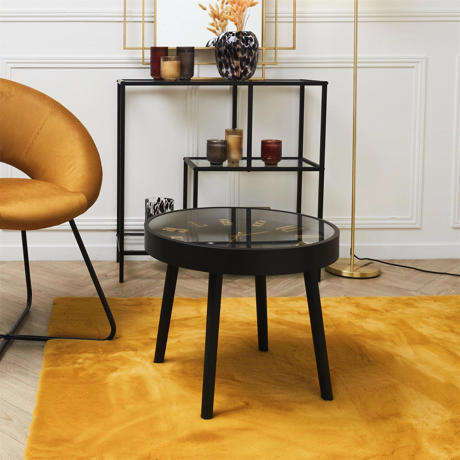 Stolik kawowy Telis czarny z zegarem to nie tylko funkcjonalne i eleganckie rozwiązanie do Twojego salonu, ale także unikalny element wystroju wnętrza. Jego nietypowy design, który łączy w sobie funkcje stolika kawowego i zegara, z pewnością przyciągnie uwagę gości i sprawi, że Twoje wnętrze nabierze wyjątkowego charakteru.