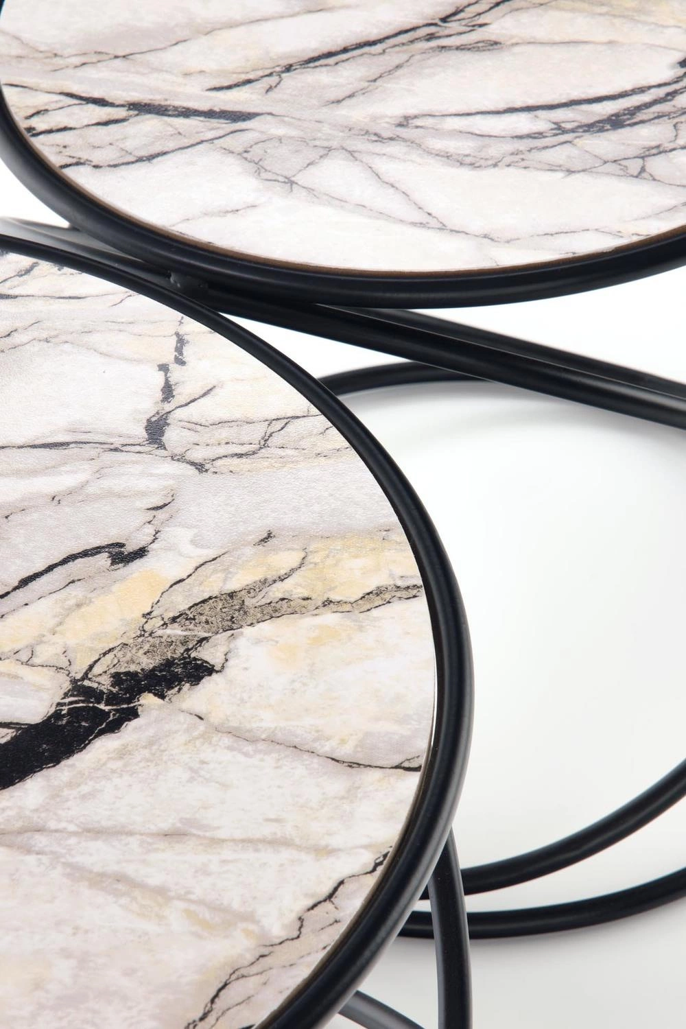 Nowoczesny stolik kawowy okrągły Chaletz wyróżnia się harmonijnym połączeniem marmurowego wzoru i głębokiej czerni. Okrągły blat sprawia, że mebel doskonale wpisuje się zarówno w aranżacje minimalistyczne, jak i industrialne. Wykończenie na biały marmur nadaje wnętrzu szlachetności, a jednocześnie optycznie rozjaśnia przestrzeń. Dzięki dwóm rozmiarom stolików możesz swobodnie je zestawiać lub ustawić osobno, tworząc praktyczny zestaw, który sprawdzi się zarówno jako stolik kawowy do salonu, jak i stolik boczny lub pomocniczy.Funkcjonalność i wszechstronność – więcej niż zwykły stolik kawowy