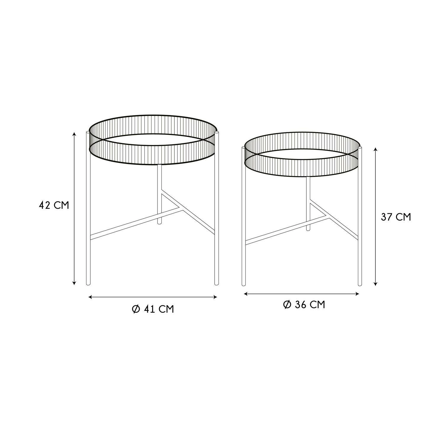 Zestaw dwóch stolików o różnej wielkości to idealny zestaw do salonu lub poczekalni. Stoliki możemy zestawić razem obok sofy lub oddzielnie np. w przedpokoju i salonie. Stoliki o uniwersalnym zastosowaniu moga pomóc w ekspozycji ulubionych kwiatów lub mogą pełnić funkcję stolika pomocniczego na książkę lub filiżankę kawy.