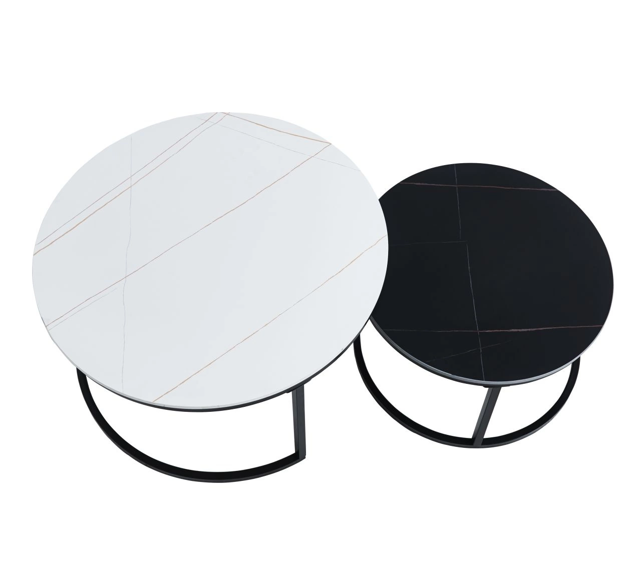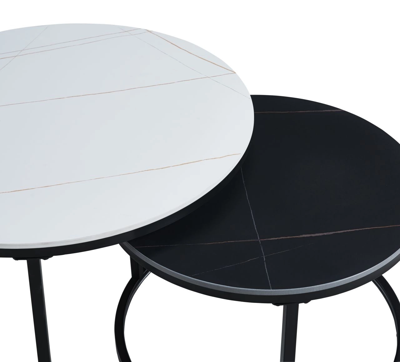 Zestaw 2 stolików kawowych Silas to idealne rozwiązanie dla osób poszukujących eleganckiego i funkcjonalnego dodatku do swojego salonu. Blaty wykonane z matowej ceramiki w kolorze białym i czarnym ze wzorem marmuru dodają wnętrzu nowoczesnego charakteru, jednocześnie łatwo komponując się z różnymi stylami aranżacji.