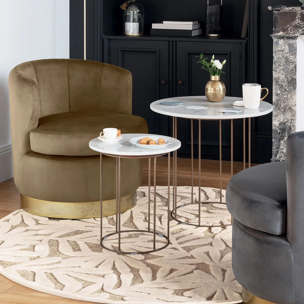 Zaprezentowane stoliki kawowe Garance Blat to idealne rozwiązanie dla osób poszukujących mebli o wyrafinowanym charakterze, które dodadzą elegancji i stylu ich przestrzeni. Wykonane z wysokiej jakości marmuru, blaty tych stolików nadają pomieszczeniu wyjątkowy urok i prestiżowy wygląd. Solidna metalowa konstrukcja stolików gwarantuje trwałość i stabilność, co oznacza, że będą one służyły przez wiele lat. Dodatkowo, lakierowane wykończenie blatu nie tylko ujednolica jego powierzchnię, ale również skutecznie chroni go przed uszkodzeniami, zapewniając długotrwałą ochronę.