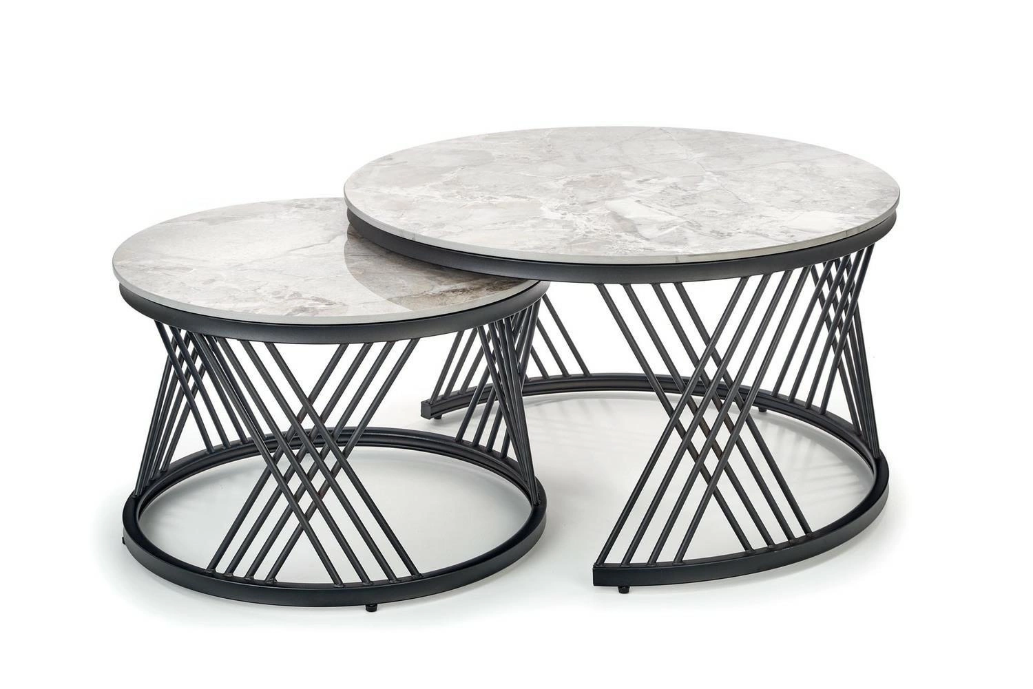Styl wykonania zestawu to połączenie nowoczesności z eleganckim glamour, co sprawia, że stoliki będą piękną ozdobą każdego wnętrza. Kolorystyka w odcieniach popielatego marmuru i czerni dodaje elegancji i stylu, a jednocześnie pasuje do wielu innych kolorów i wzorów. Zestaw 2 stolików Intela to nie tylko piękna ozdoba salonu lub jadalni, ale także praktyczne rozwiązanie. Dzięki różnym wymiarom stolików można je wykorzystać na wiele sposobów — jako miejsce do przechowywania przedmiotów, do pracy przy laptopie, czy jako podstawka pod lampę lub kawę.