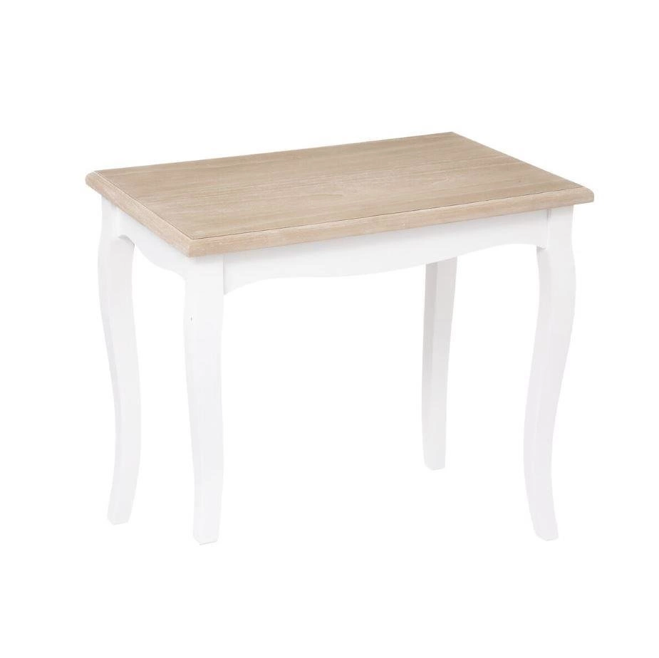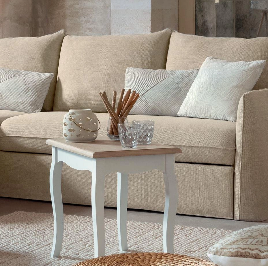 Blat w naturalnym odcieniu drewna pięknie kontrastuje z białą, matową podstawą, wprowadzając do wnętrza świeżość i lekkość. Prosta, geometryczna forma sprawia, że te stoliki kawowe idealnie wpisują się w wystrój skandynawski, nowoczesny czy klasyczny. Stylowe detale, takie jak subtelne, lekko zwężane nogi z litego drewna sosnowego, dodają całości eleganckiego charakteru i podnoszą walory estetyczne mebla.